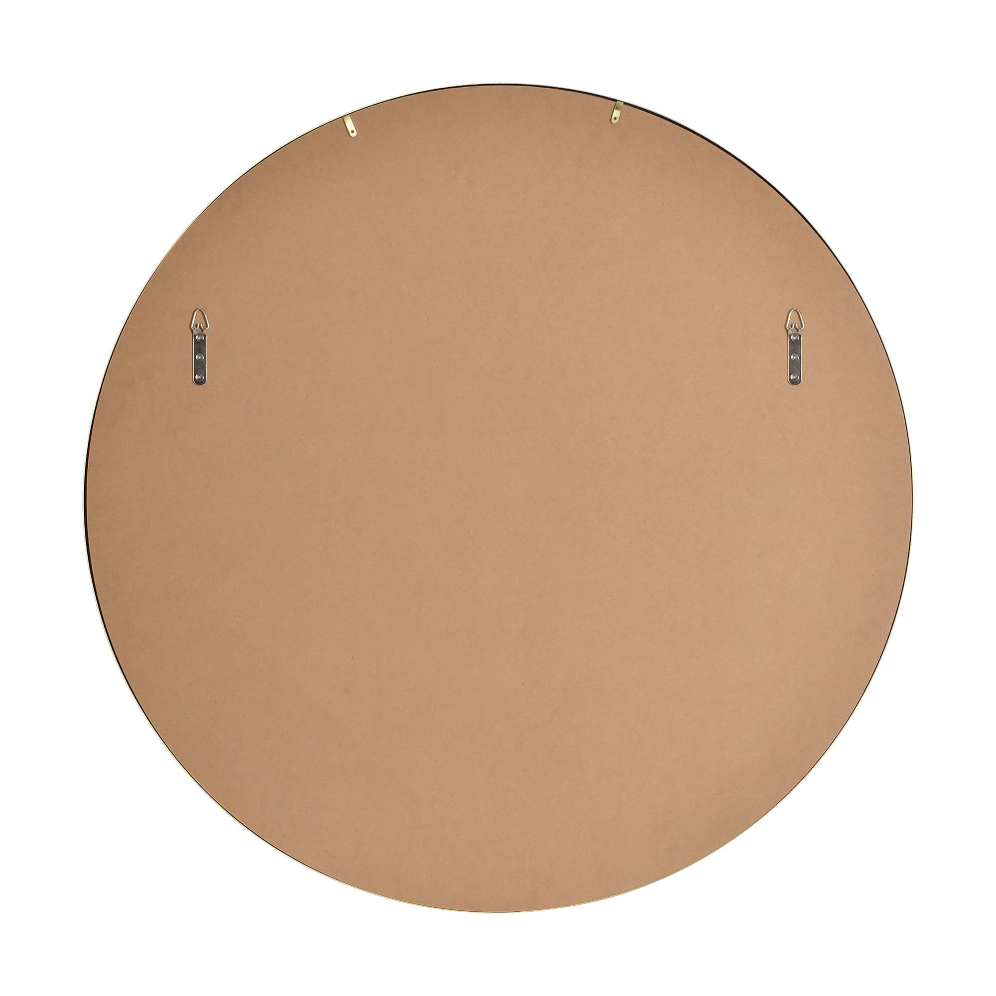 A satin brass frame gives this round mirror a warm radiance. This framed mirror can easily blend into its surroundings if that is the intention, but it has the power to act as a work of art in a minimalist setting as well.
