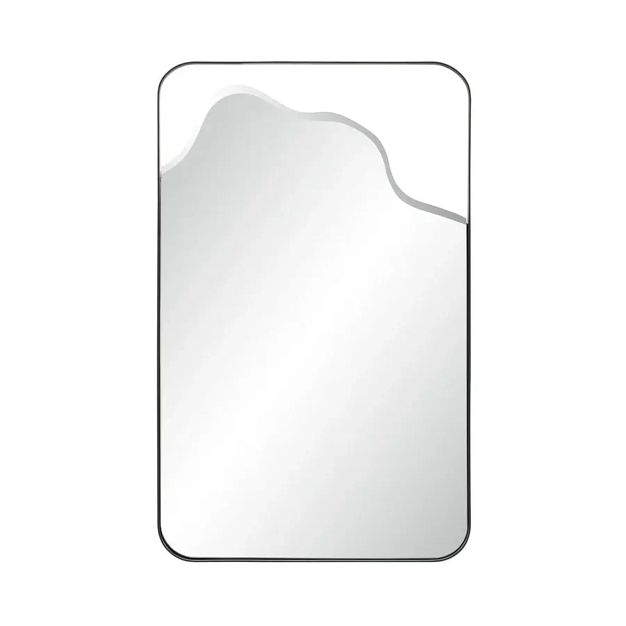 Refresh any interior with the contemporary Heron wall mirror, a modern take on a traditional rectangular form. Softly rounded corners bring a subtle, designer edge, while a minimalist decorative detail enhances its visual appeal. The matte black iron frame pairs with high-quality beveled glass for crystal clear clarity, proving that simple refinement can create a stylish, memorable statement in any space.