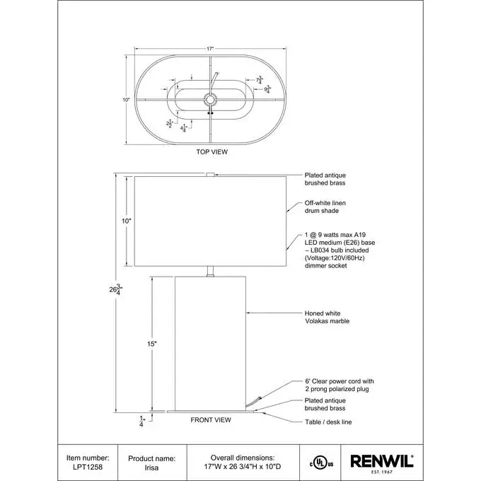 RENWIL IRISA LAMP LPT1258