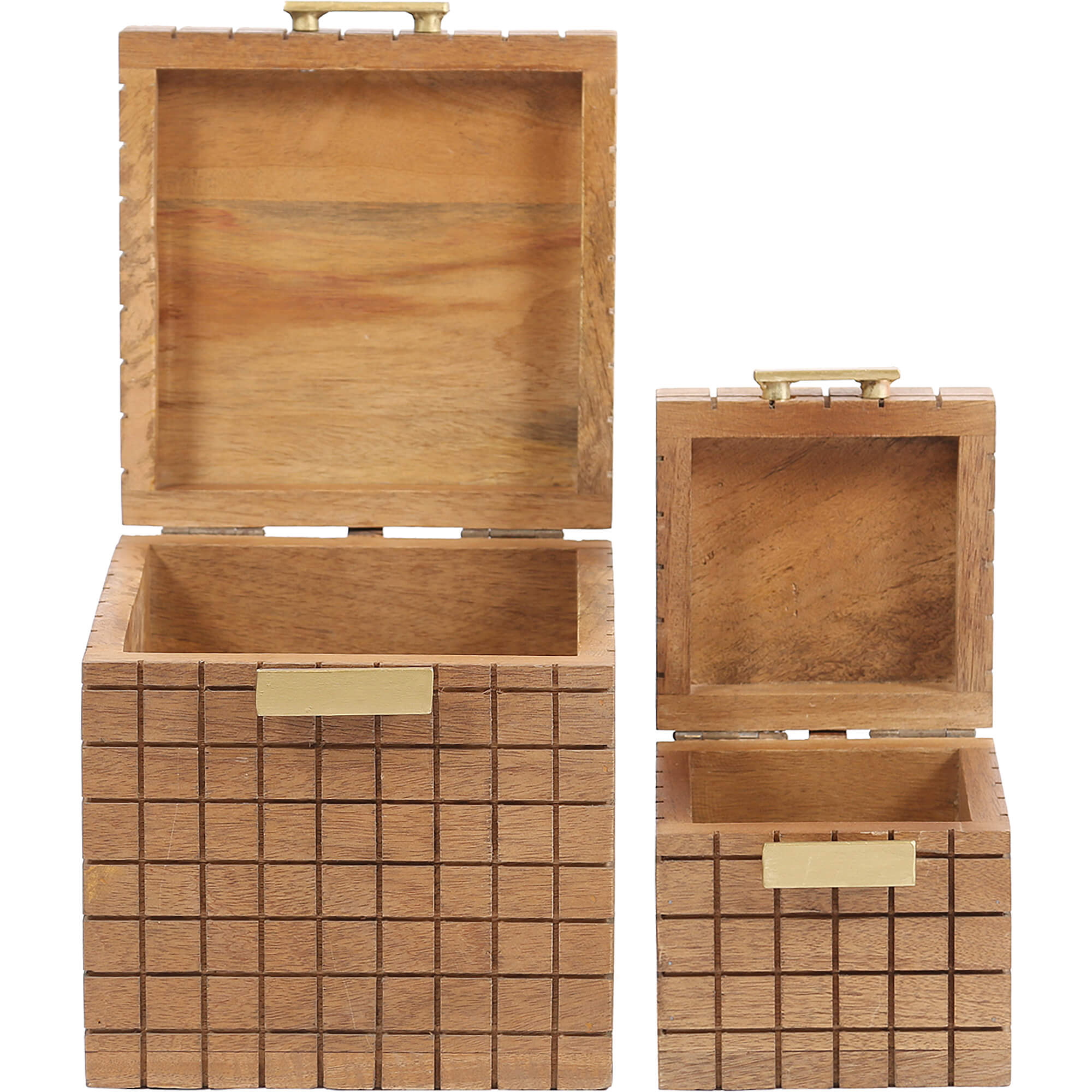 Set Of Two – Box – Mango Wood – Carved – Natural Finish – Iron Antique Brass Plated Finish