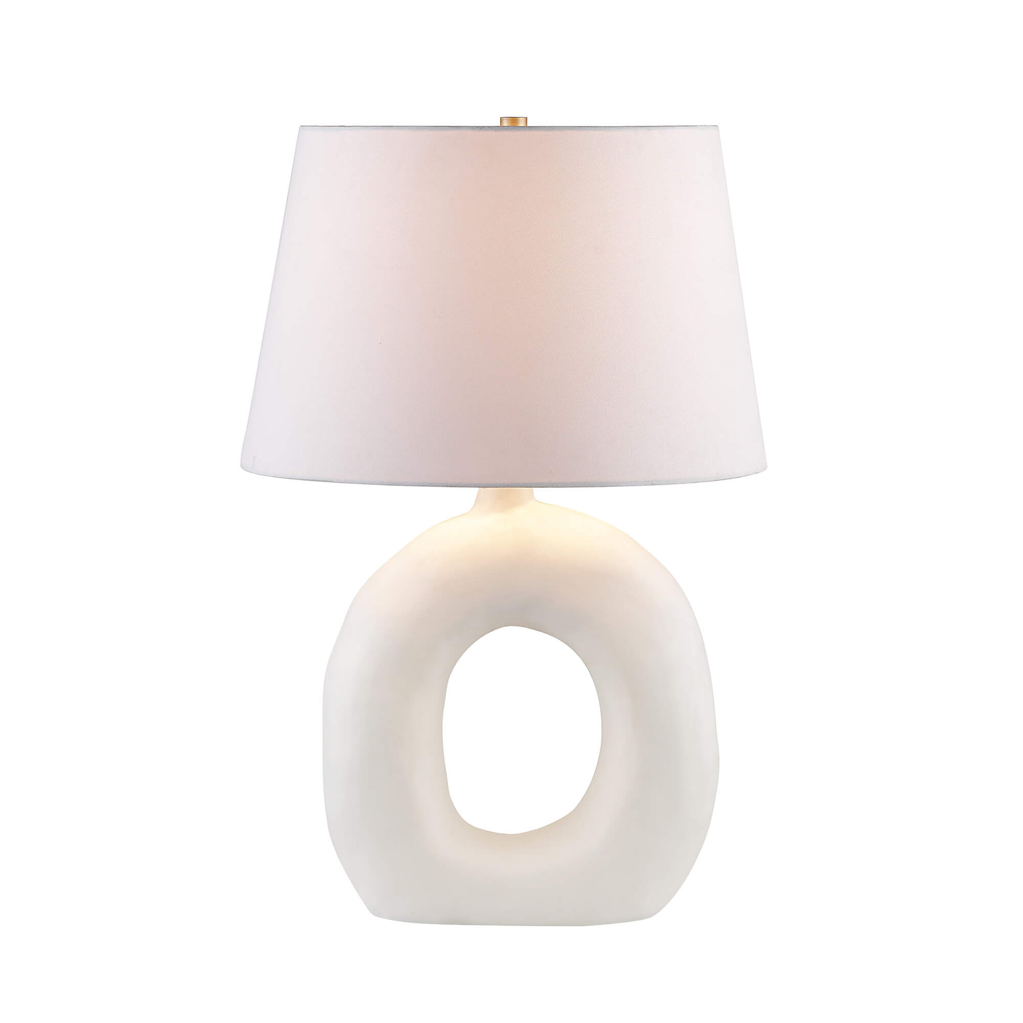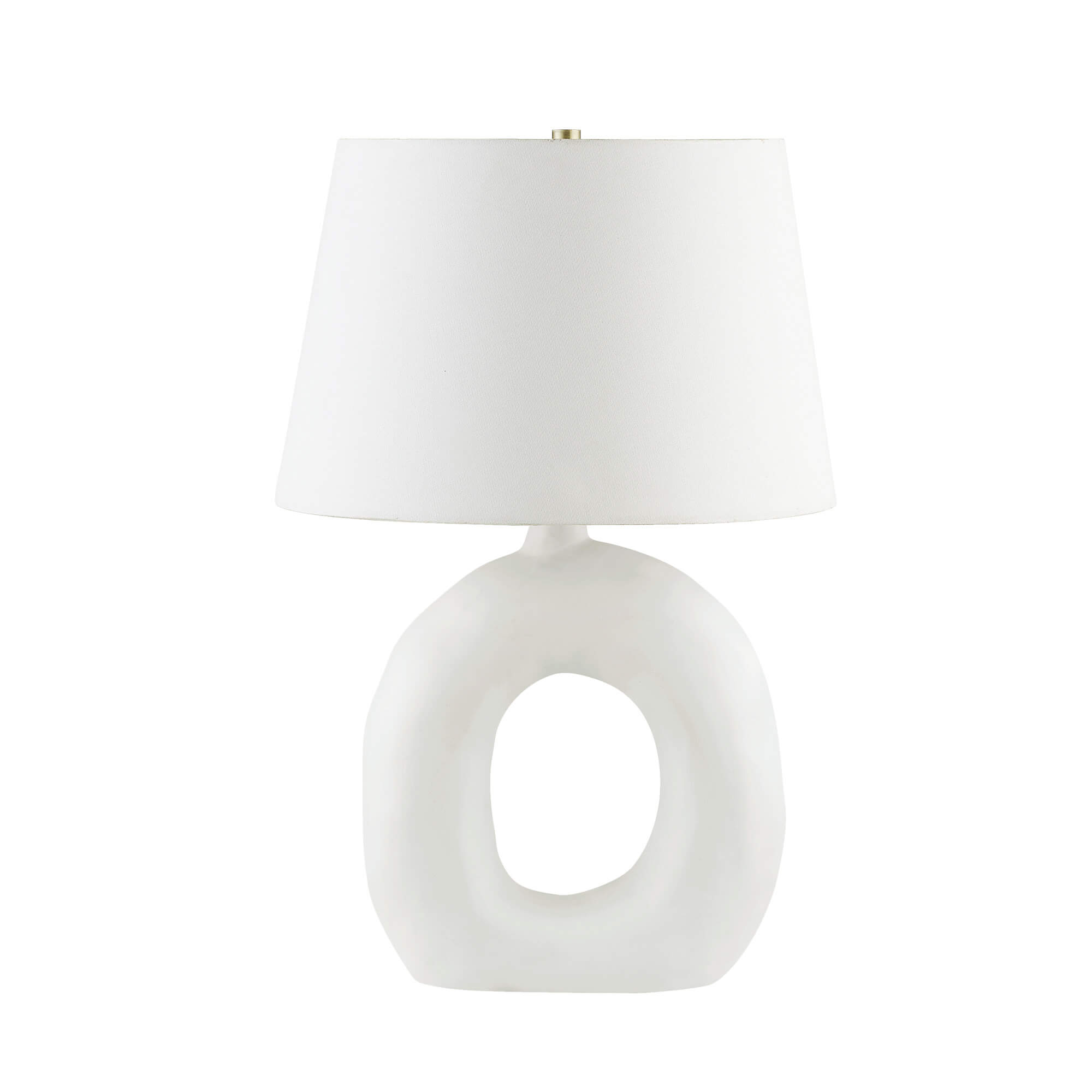 Simple in palette but significant in design, this table table lamp has an architecturally inspired quality that is reminiscent of a sculpture. This piece completes the designer-forward energy of the room it's set within. Set in a living room or entryway, this table lamp is best styled with pieces that are modern but have heritage influences.