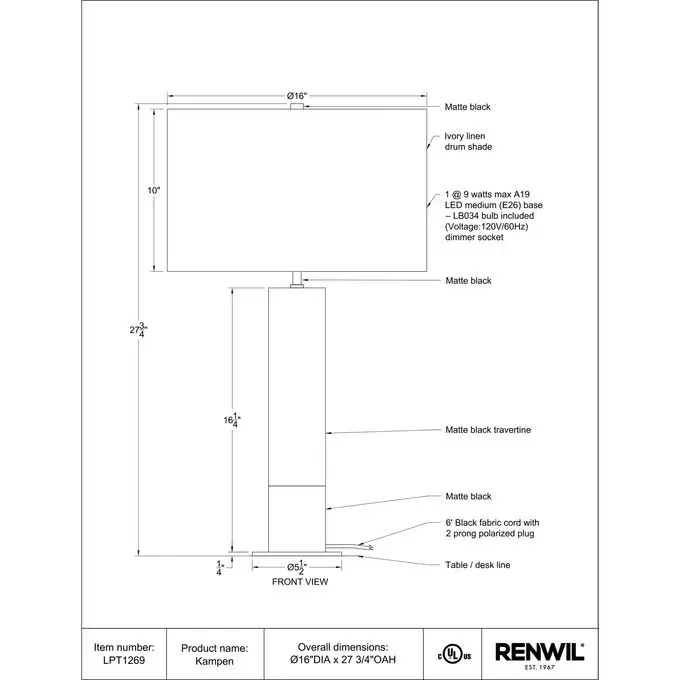 The Kampen 28" Tall Matte Black Iron Table Lamp boasts a sleek and modern design that will elevate any space. Its matte black finish and sturdy black fabric cord create a sophisticated and contemporary look. The lamp is built with durable materials and comes with a sturdy clear cord for lasting performance and easy maintenance. It connects seamlessly with standard E26 sockets and supports bulbs up to 100W, providing compatibility with a wide range of lighting options. With an equipped dimmer socket, you can easily adjust the lighting to your desired level of brightness, making it perfect for any occasion. Illuminate your home or office with the Kampen 28" Tall Matte Black Iron Table Lamp.