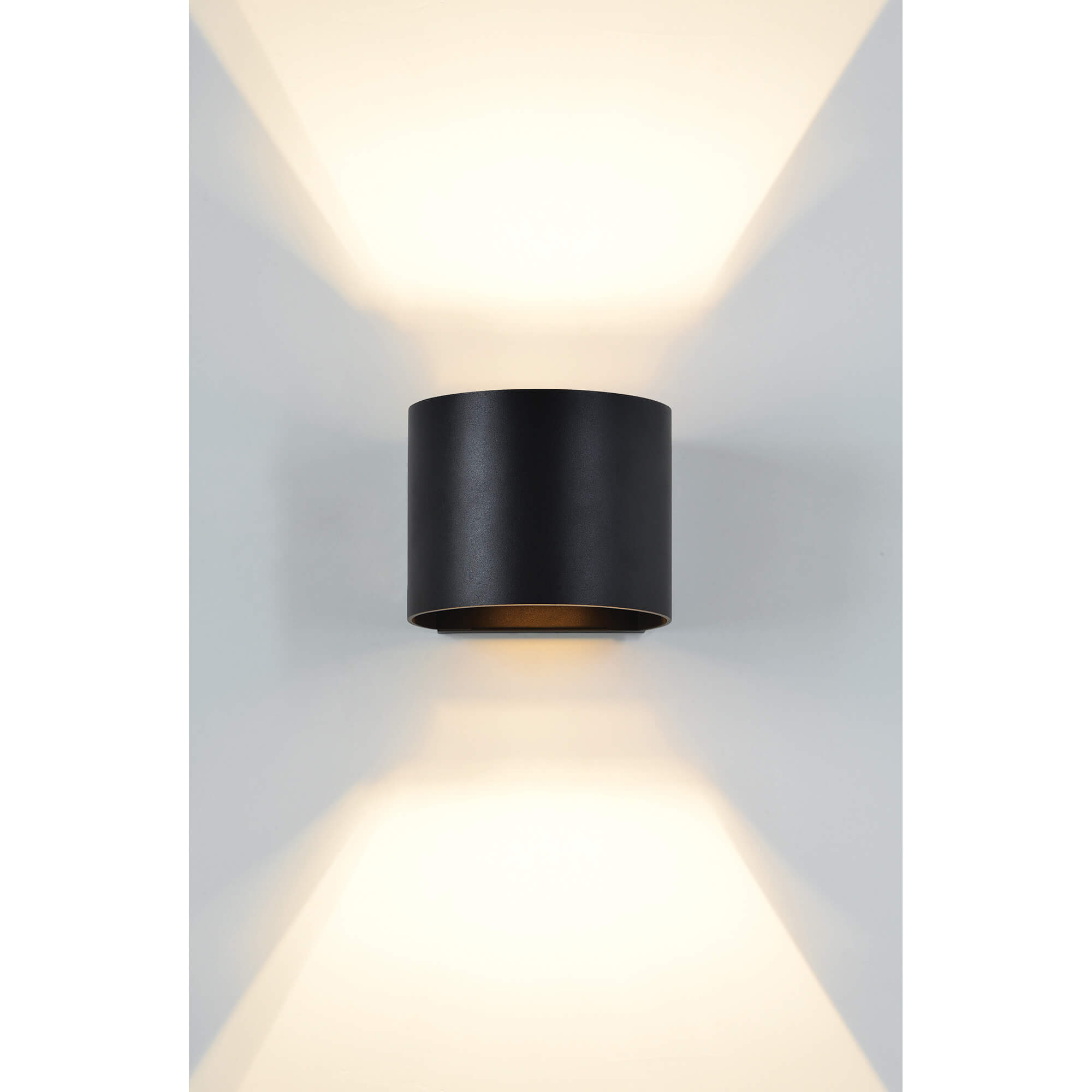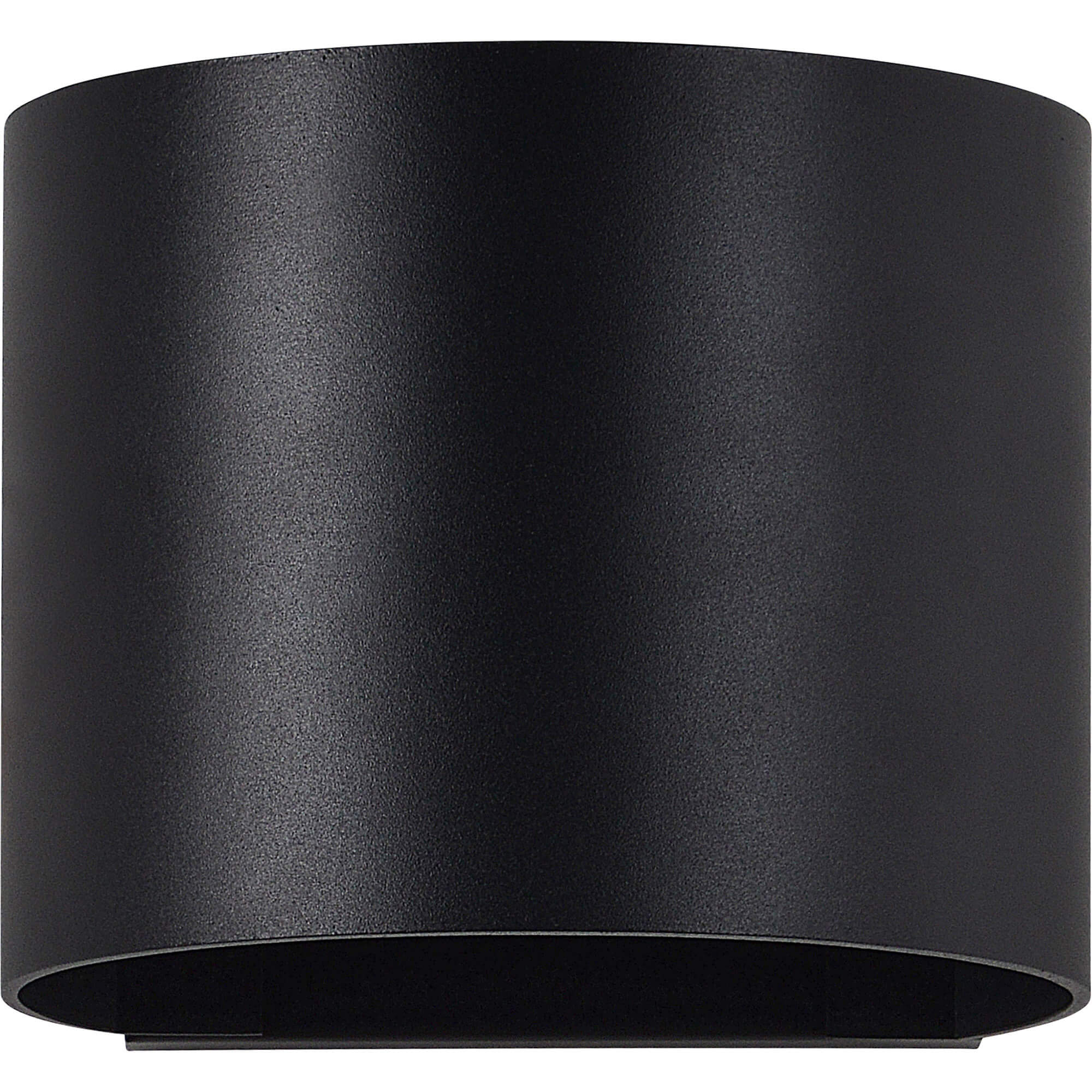 A black finish makes an impact in this sconce design. Set within the industrial interior, it is complemented by the warm elements of the space. The 6- by 5-inch aluminum build has the ability to cast a dramatic shadow and shine a dramatic light.