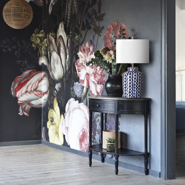 Table Lamp – Iron – Satin Nickel Plated Finish – Ceramic – Blue & White Finish – Off-White – Cotton Shade – 3-Way Switch – Max. 100W – E26 Socket