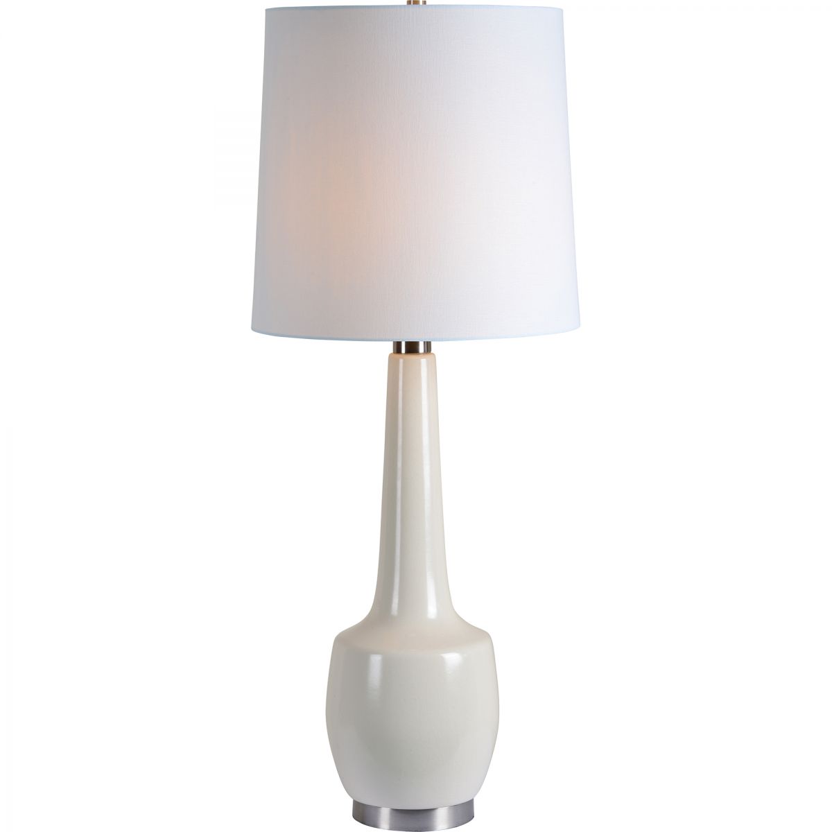Table Lamp - E26 Base - 3 Way Socket - Off White Tetron Cotton Shade - Cream Crackel Finish - MAX Wattage: 100W