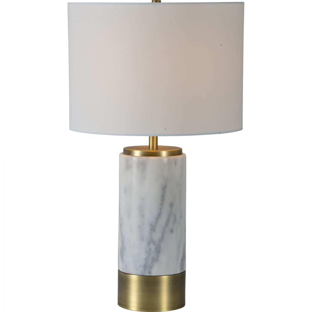 Steel / Marble Table Lamp - E26 Base - 3 Way Socket - Off White Linen Shade - Antique Brass Finish - MAX Wattage: 100W
