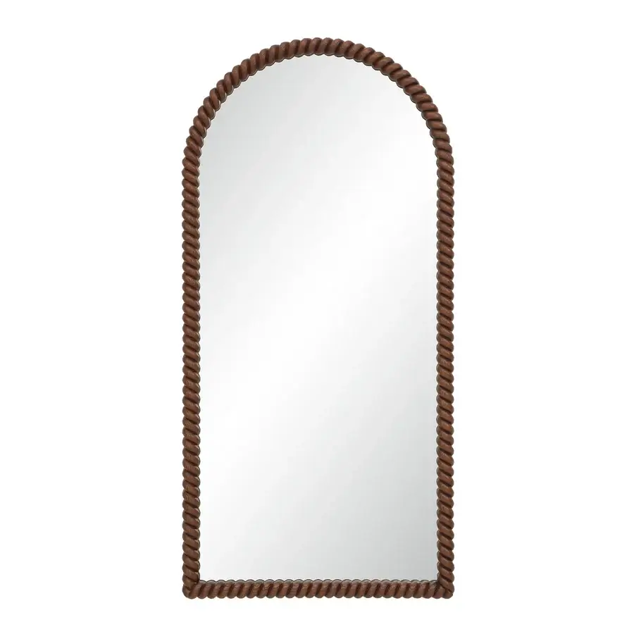 The Madiwell full-length leaning mirror blends contemporary flair with classic charm. Its arched frame, inspired by textured rope and finished in warm walnut, adds depth and character to any room. Paired with crystal-clear, distortion-free glass, this mirror combines function with craftsmanship, creating a striking statement piece that elevates any interior with style and sophistication.