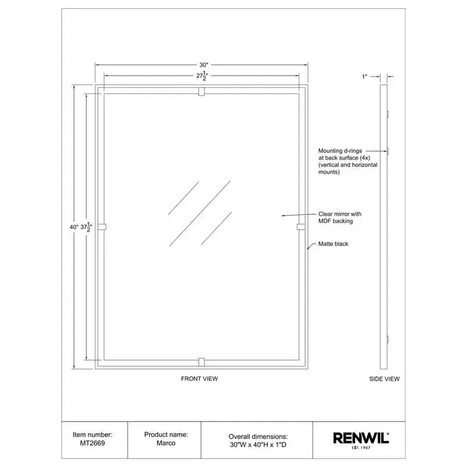 Boasting clean lines and a classic silhouette, elevate any contemporary space with the Marco rectangular wall art mirror. A sleek matte black iron frame envelops high-quality glass to deliver a sturdy and stylish piece that promises a distortion-free reflection every time. A convenient D-ring system enables 2-way hanging so you can display this mirror vertically or horizontally to best suit the space. Not too big and not too small, it’s perfectly sized for hanging over a living room fireplace, an entryway console table, a dining room credenza or anywhere else that could use a stylishly timeless statement.