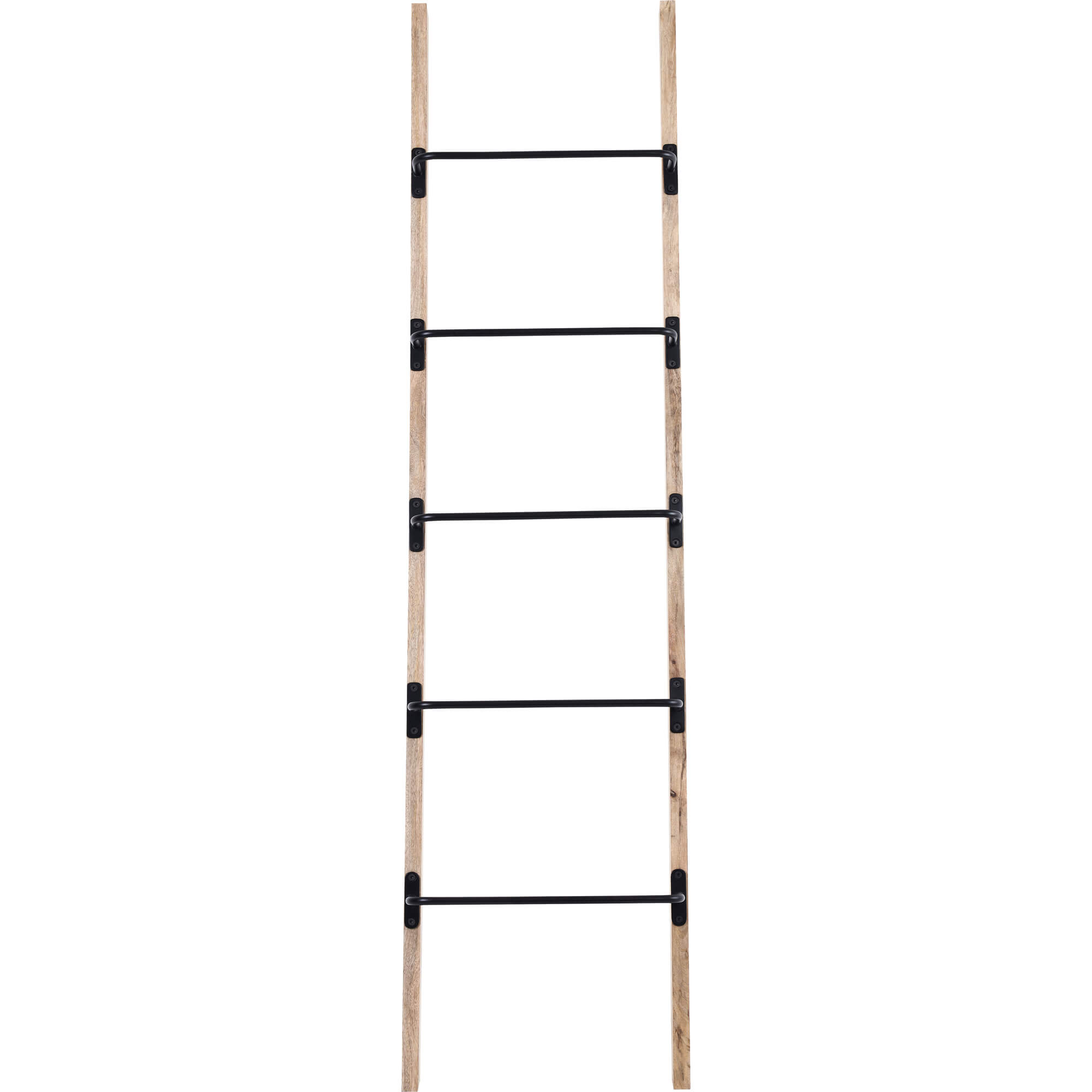 Bringing sleek style to industrial influence, this decorative ladder elevates and assimilates into the contemporary interior in the best way possible. Whether holding throw blankets in preparation for moments of comfort and calm, or resting solo for added dimension, its 72-inch height elongates the bedroom or living room wall it’s set against. Composed of mango wood with matte black powder-coated aluminum details, it brings together organic elements and bold design.