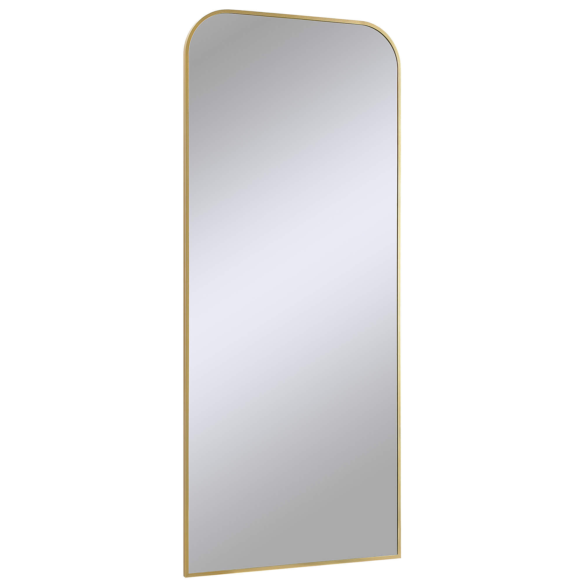 Luxe yet laidback, this towering full-length mirror design completes the designer quality appeal of the home interior. Ideal for a homeowner seeking to elevate and expand the appearance of their living room, bedroom or entryway, this full-length mirror's lustrous quality reaches every corner of the room. Showcasing a power-coated gold frame, this essential accessory fits idyllically in traditionally glamorous mid-century modern and contemporary spaces.