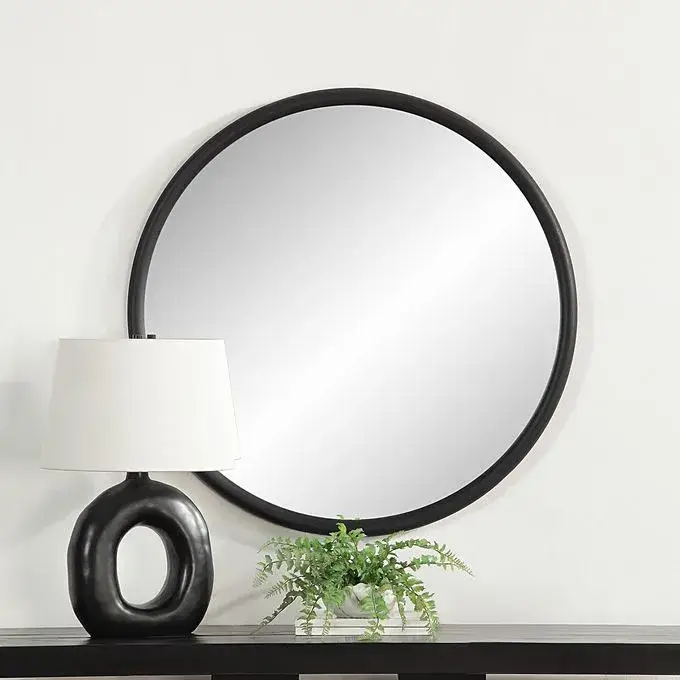 The Namur 36" Tall Round Mirror in Matte Black is the perfect addition to any modern home. With clean lines and a sleek design, it's sure to add a touch of sophistication to any space. The mirror is optimized for easy vertical hanging and features a D-Ring system for effortless installation. Its round shape adds visual appeal, while the matte black finish provides a contemporary touch. This mirror is not only stylish but functional as well, making it the perfect choice for any room in your home. Upgrade your decor and get your hands on the Namur 36" Tall Round Mirror today.