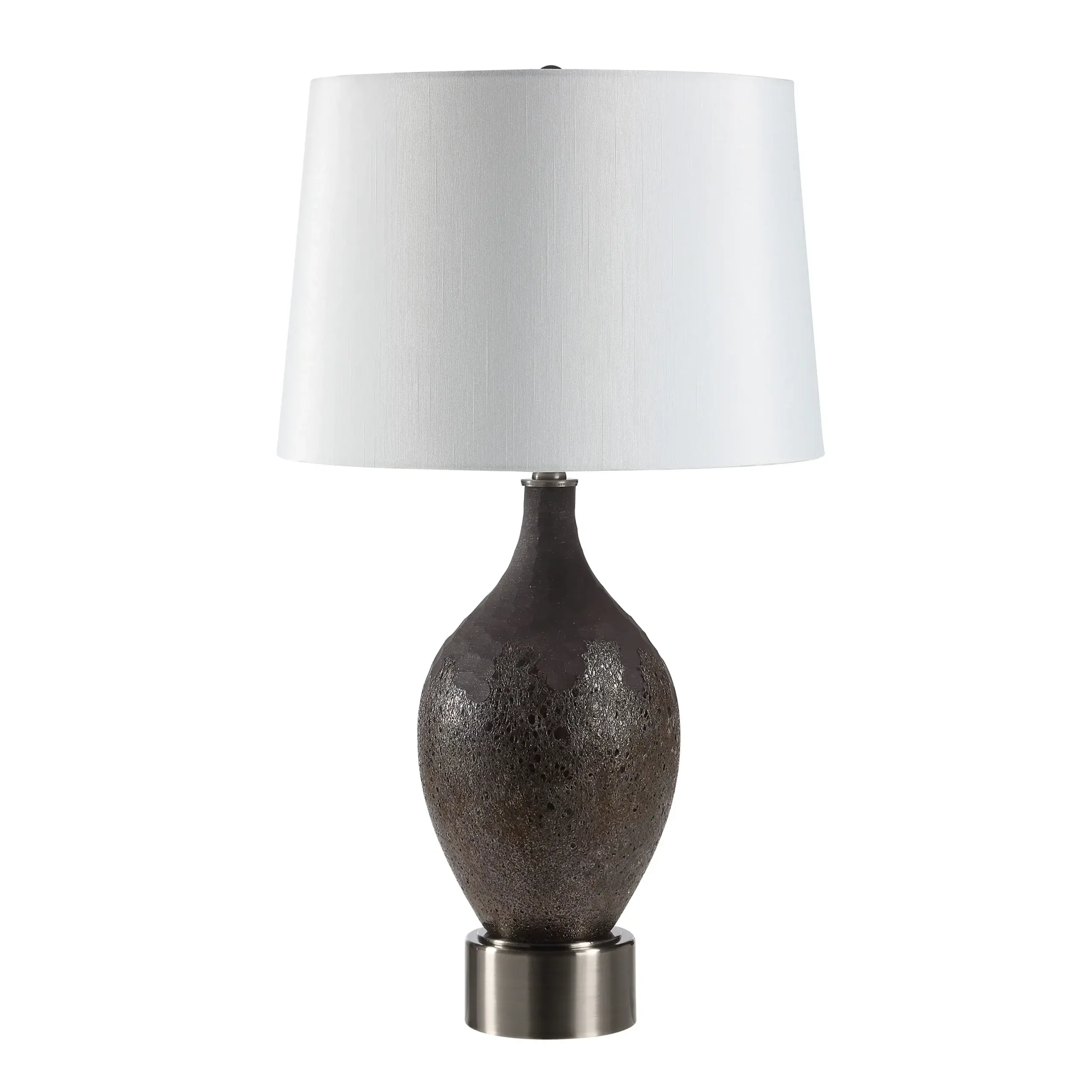 Add your designer’s touch to any interior by including metal accents in your decorating scheme. This table lamp makes it easy thanks to its generously proportioned pewter-plated base that perfectly complements a glass body hand-painted in rich brown. Finishing off the look is an off-white faux silk shade for lighting perfection.
