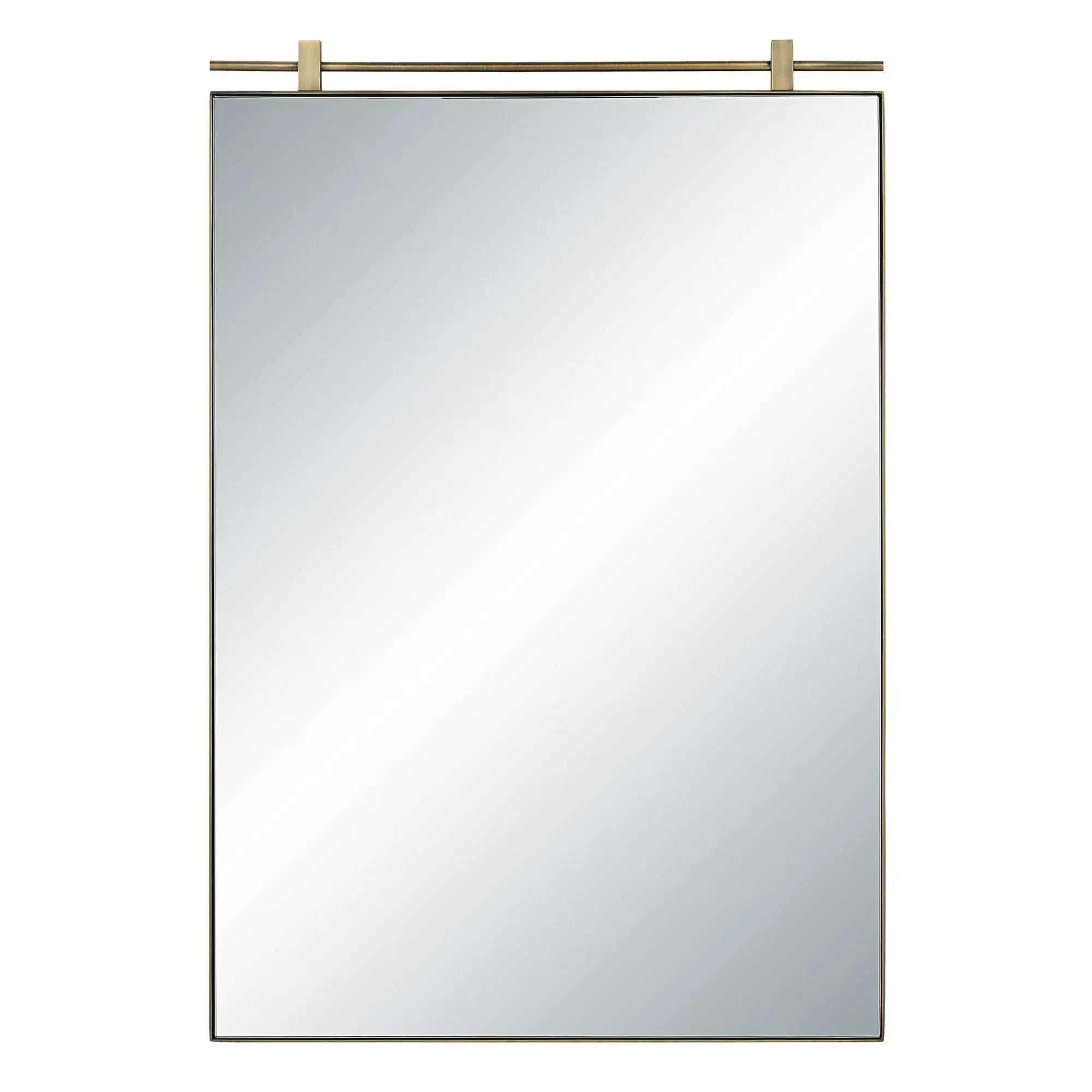 Crafted with a beautiful dark antique brushed brass frame and a unique suspended design, this wall art mirror is just the thing your design plan is craving. Measuring 24” x 36”, it’s perfectly proportioned to hang solo or as a pair, anywhere you need a shot of modern style.