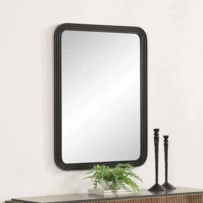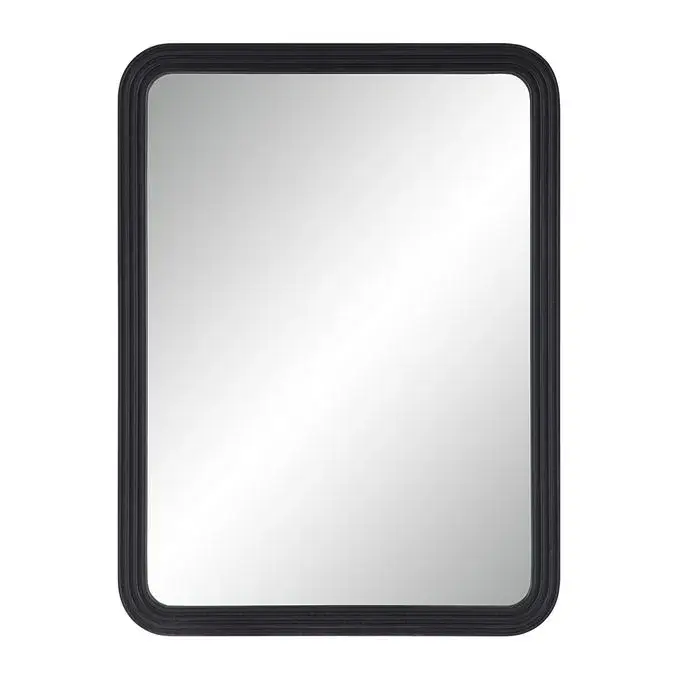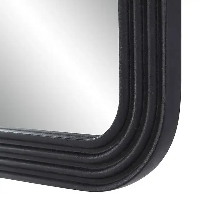 Upgrade your interior with our Nolana 40 Tall Rectangular Mirror in textured matte black. Made with a sturdy MDF frame, this mirror is built to last and exudes a sleek, versatile design. The D-ring hanging system makes it easy to install, and with four-way hanging capabilities, it offers versatile display options to suit any interior. A perfect complement to any room decor, this mirror is a statement piece that enhances the aesthetic of your space. With its standout design and impressive functionality. This mirror is a must-have for anyone looking to bring a touch of elegance to their interior design.