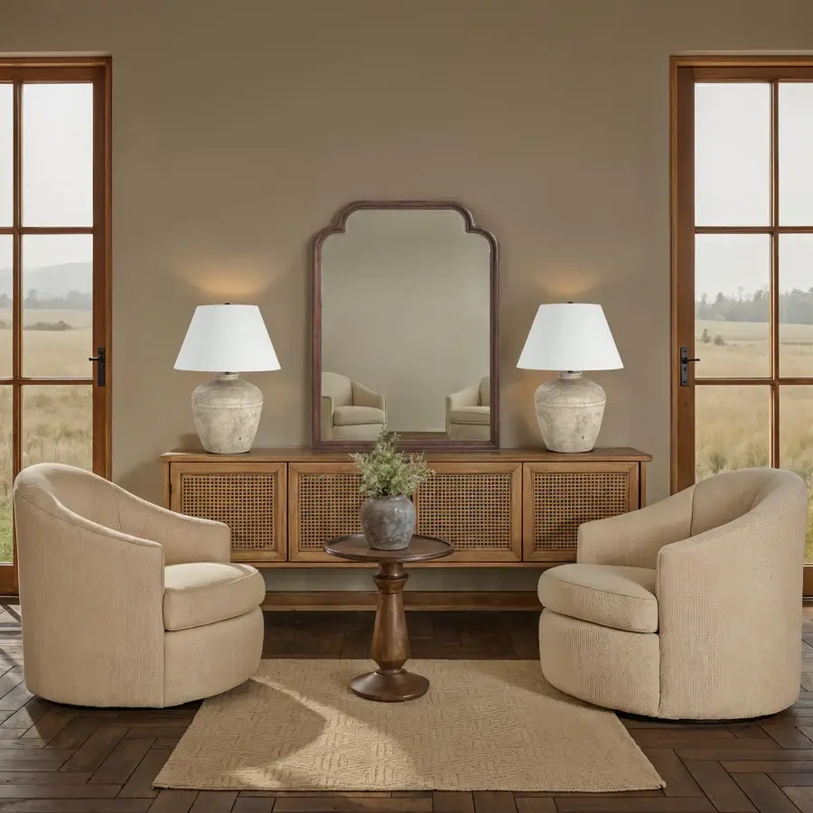 Bring inviting character to any room with the Octavian arched wall mirror. Made from mango wood with a warm walnut stain, it showcases a beautiful natural grain and an elegant, curved profile. The crystal-clear, high-quality glass brightens and expands the space, offering both practicality and style. A refined choice that suits everything from cozy traditional settings to clean, modern interiors.