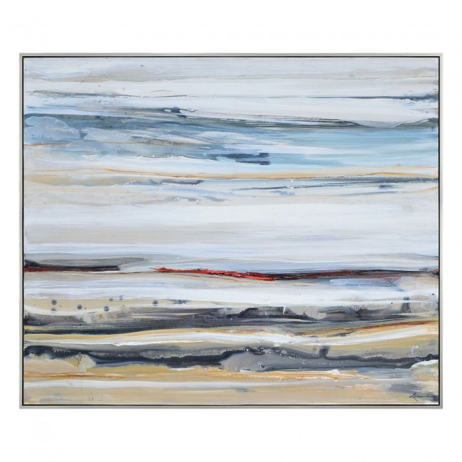 The subtle striated pattern of the floating frame will create iridescent gold highlights and subtle color variations depending on the light.