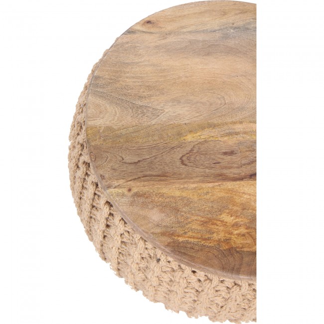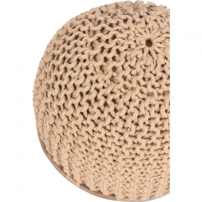 Pouf - Beige Cotton Knitted - Mango Wood - Natural Finish - Bead Filling