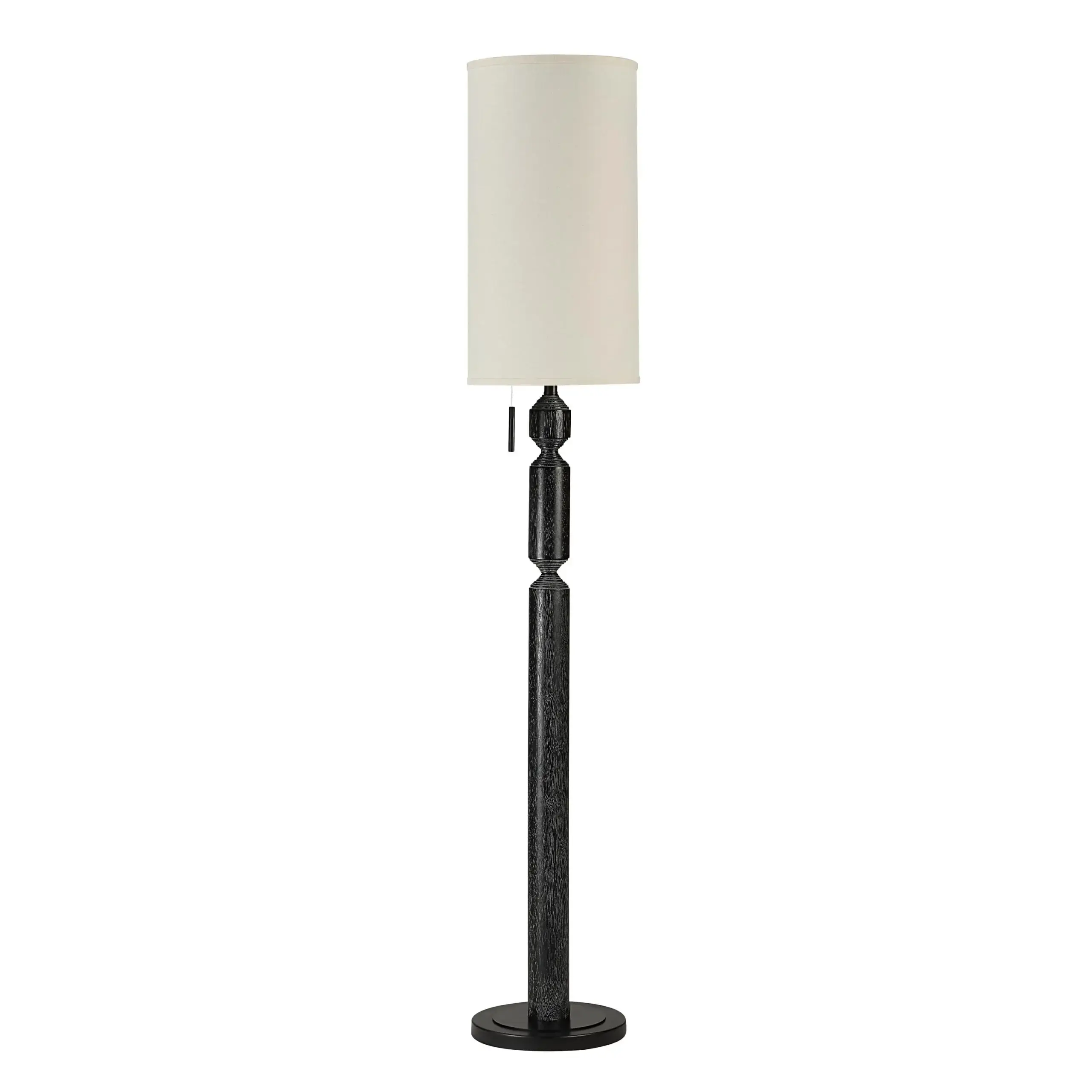 The Pheonix floor lamp proves that adding a touch of black to a room is an excellent way to ground it. Designed with a modern geometric body, its clean lines are emphasized further by an elongated cream linen shade to deliver a bold look that takes notice. Give its stylish pull chain a simple tug to customize the light intensity to suit the mood and set the perfect ambiance in any room.