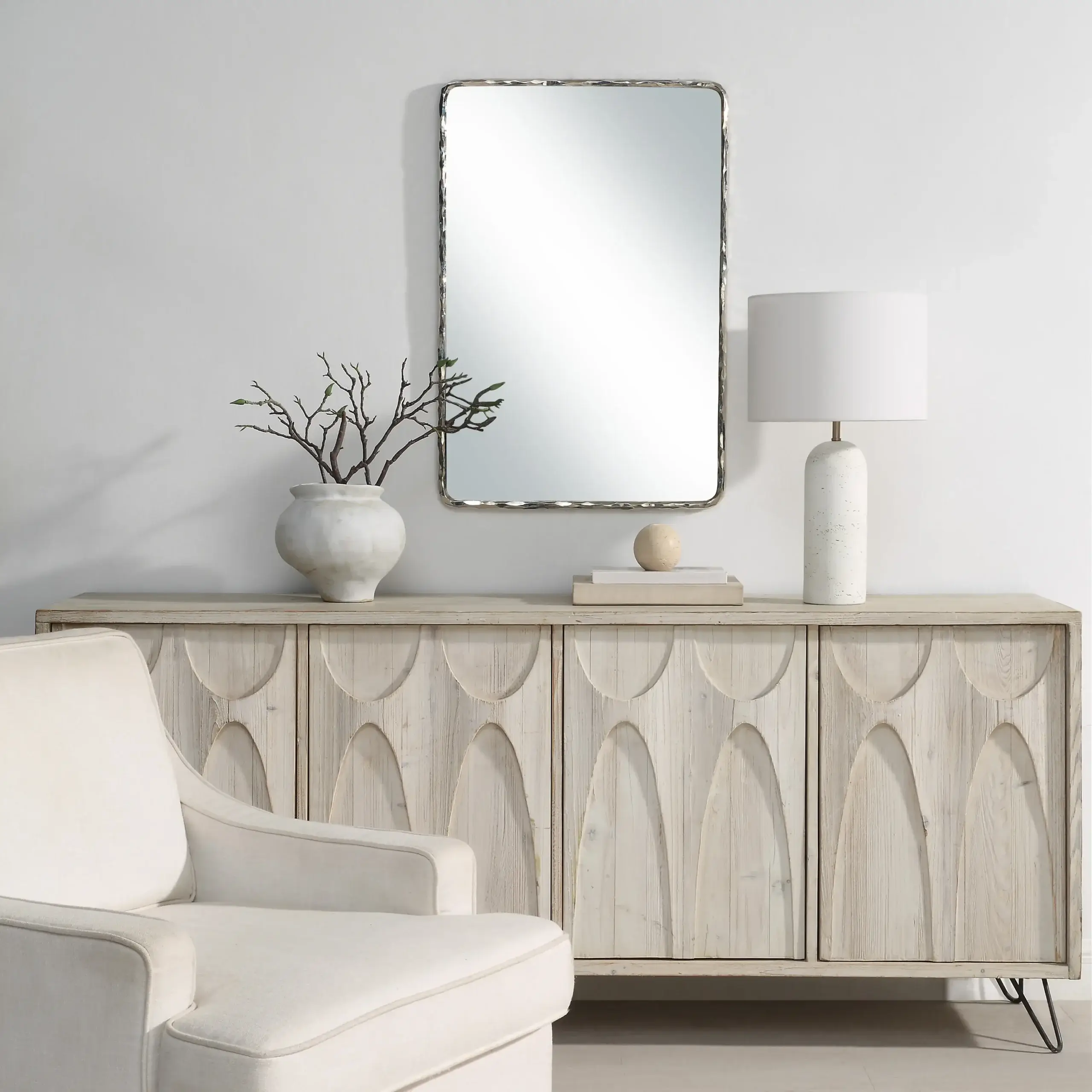 Add form and function to an entryway, bedroom, office or any other space with the understated style of this wall art mirror. A stylish pick for many decorating schemes, its timeless polished nickel-plated frame boasts softly rounded corners and is outfitted with high-quality distortion-free mirror glass for reflection perfection.