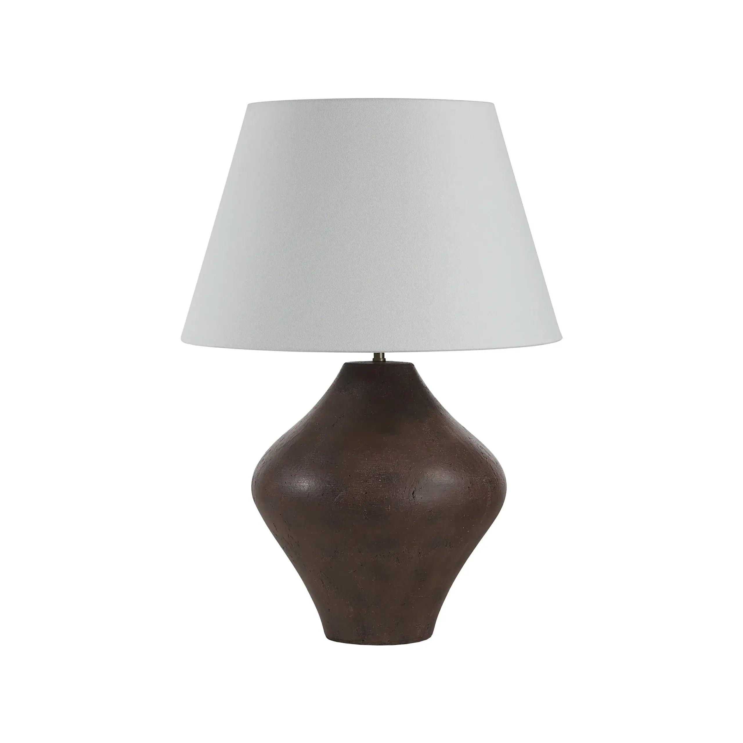 Standing at an impressive 30.75 inches tall, this oversized table lamp is a bold choice for bringing height and drama to your design project. Perfect for displaying on a credenza or console table layered in front of large-scale art, its brown ceramic body grounds the fixture while its ivory linen shade provides balance and a soft, diffused glow.