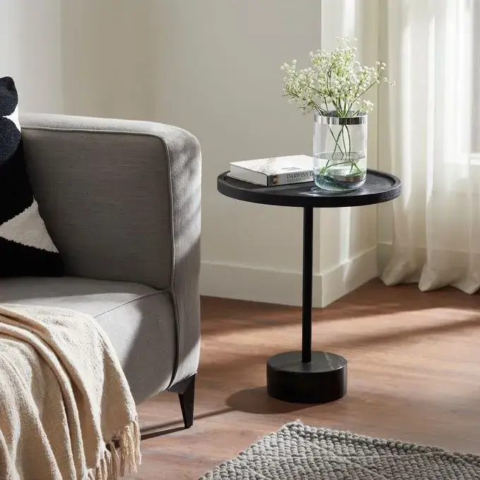 The Samba side accent table is not to be missed. Measuring 18 inches wide, it’s an ideal size for placement next to a couch, chaise longue or bed, conveniently keeping things within reach and never sacrificing style. Designed with a compact footprint, its natural black marble and black finished iron base delivers an airy feel while its acacia tabletop features a matte black finish for a dark effect that’s totally on trend. Sleek and simple in its design, this end table would be a great complement to any design project. Check it out and see for yourself.