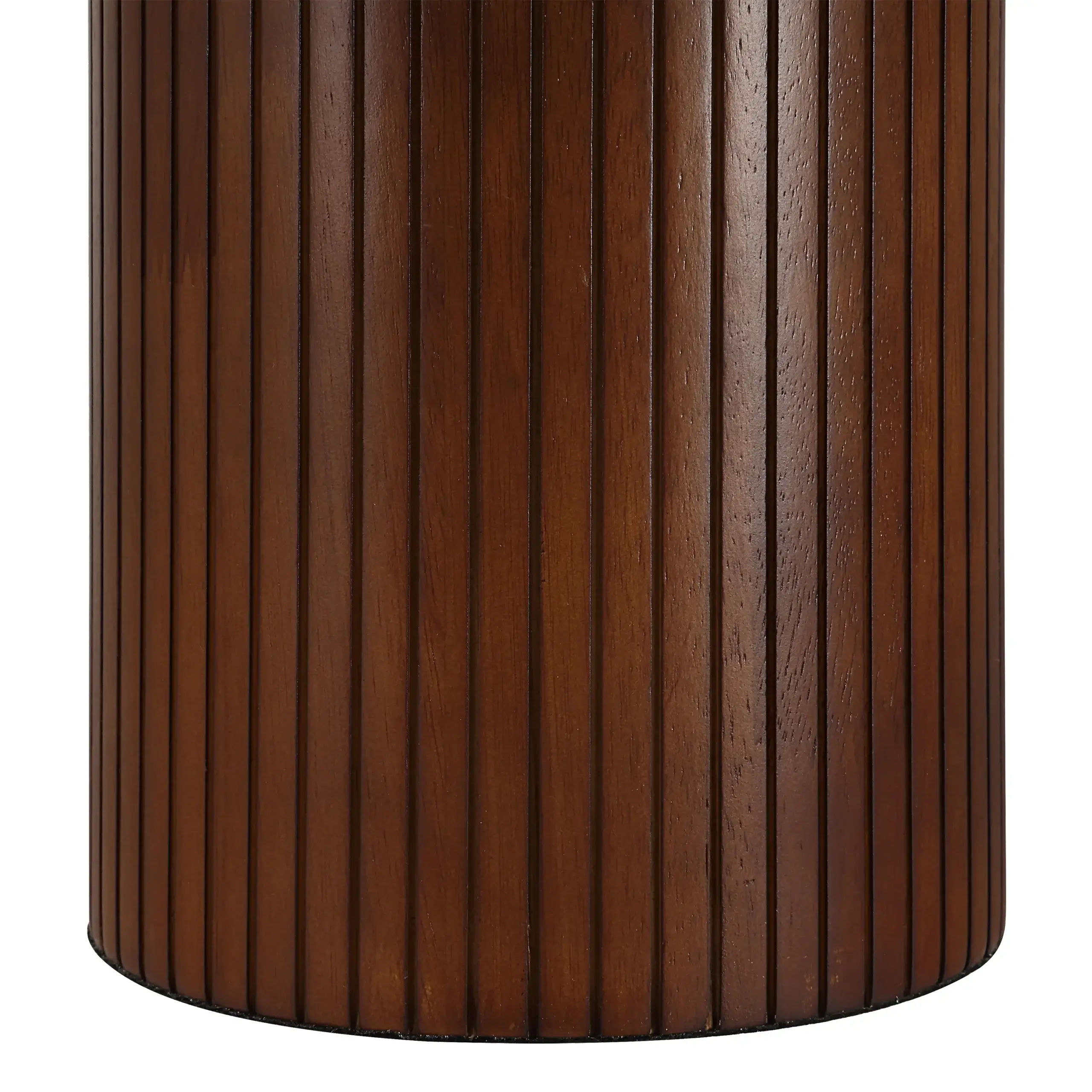 Combining the drama of warm walnut wood and the purity of ivory linen, this table lamp balances dark and light to create the kind of visual interest that suits both contemporary and transitional interiors. Featured on a console, buffet or end table, its enduring style will leave a lasting impression while elevating any space.