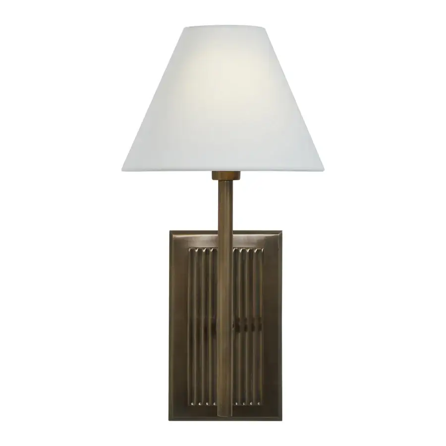 Elevate any space with the effortless elegance of the Solaria sconce. Its dark antique bronze finish and ivory linen tapered shade create a soft, inviting glow, while a sleek silhouette adds modern refinement. Perfect solo or paired, it layers light beautifully in bedrooms, reading nooks, or beside mirrors for subtle, sophisticated style.