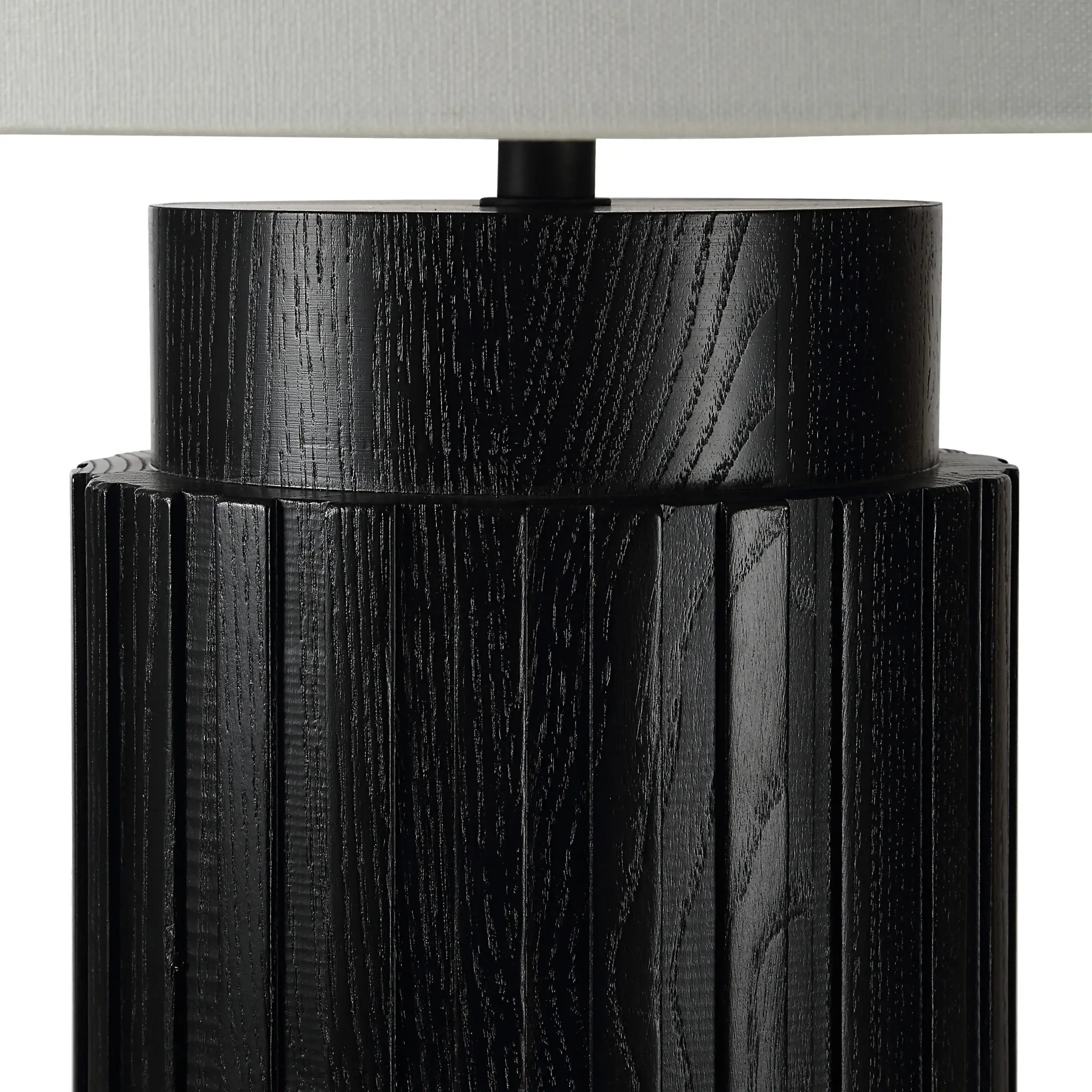 Part of the Steven Sabados collection, this table lamp brings a modern aesthetic to the world of lighting. Featuring a minimalist style, this light is crafted from ash wood with an on-trend ribbed base and a matte black stain. Topped off with a clean-lined tapered linen drum shade, this lamp is the perfect complement to contemporary interiors.