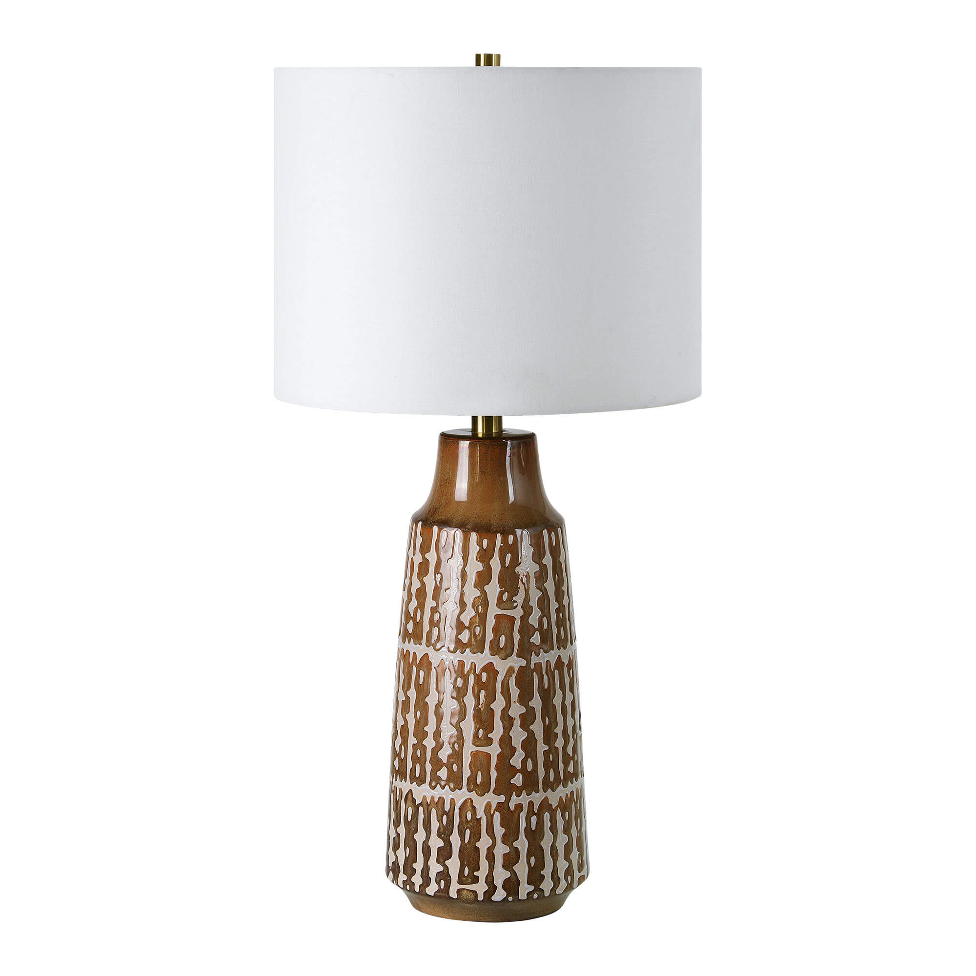 Featuring a tribal-inspired ceramic base, this table lamp design is an optimal accessory for the bohemian or modern interior. Clients seeking a lamp that adds equal parts character and creativity will find their needs are met in this ceramic table lamp design. Whether arranged as two in the bedroom or one in the living space, it is equally as enchanting.