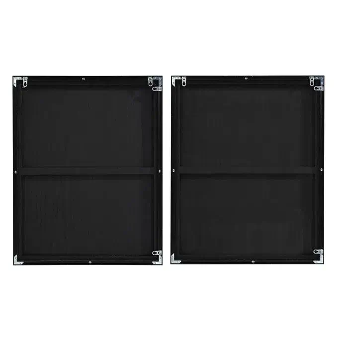 Set of 2 – Wall décor – Hand-painted – MDF tiles with wood veneer – Matte black aluminum frame – 2-way hanging