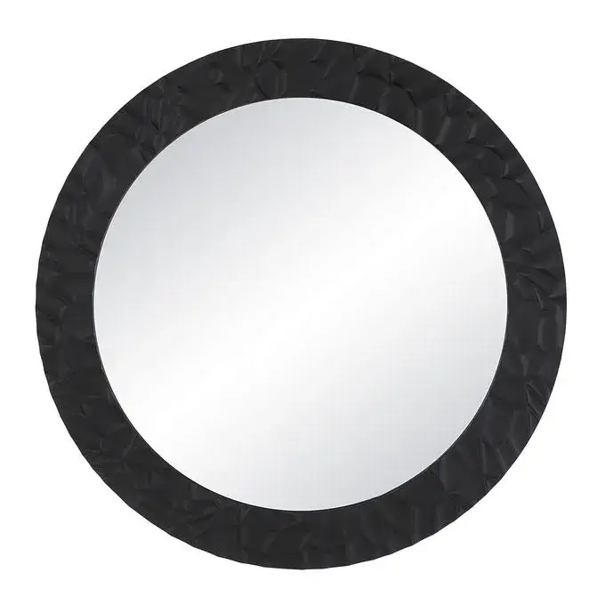With a rugged hammered metal look, the Tolima wall art mirror is set to add drama to any setting. Created using cast aluminum with a matte black finish, this mirror has all the great looks of iron without the extra weight. Its sturdy yet lightweight construction joins forces with a D-ring system to make installation easy anywhere you see fit. Hung over a fireplace, above an entryway table, or anywhere that needs a shot of eclectic style. This mirror is sure to update any space.