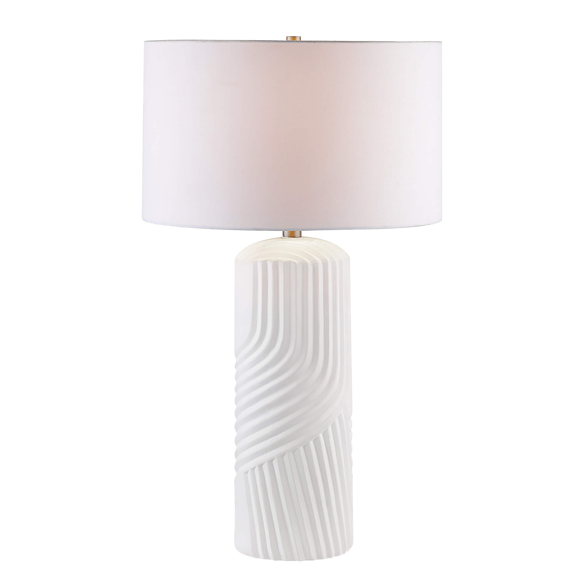 A textured ceramic structure lends complexity to the traditional table table lamp design in this piece.