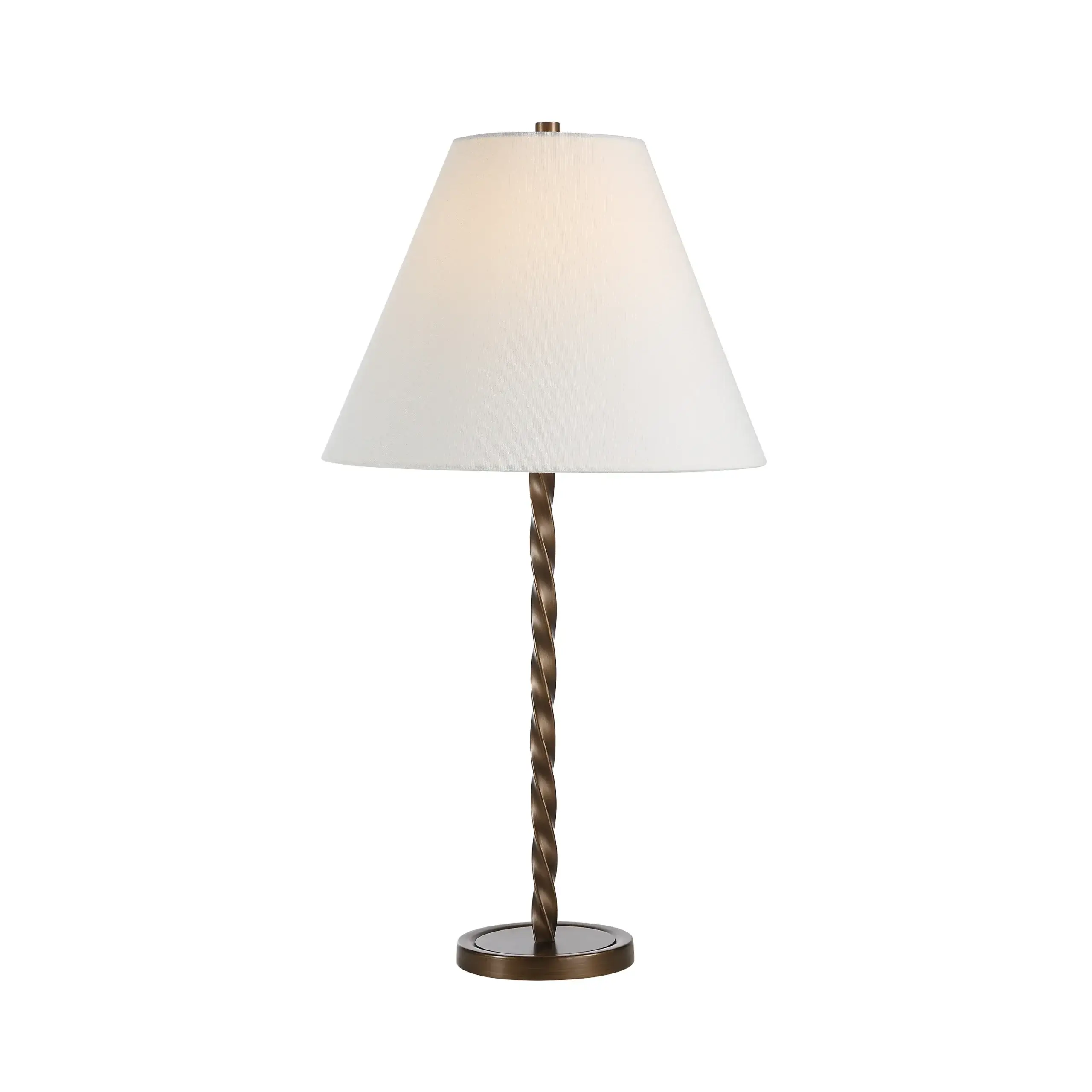 Able to deliver timeless elegance to a traditional space or bring an unexpected touch of old-world charm to a modern interior, any way you style this table lamp, get ready for enduring appeal. Crafted with a dark antique bronze base and a light-diffusing off-white linen shade, place this lamp anywhere ambient light and classic style are needed.