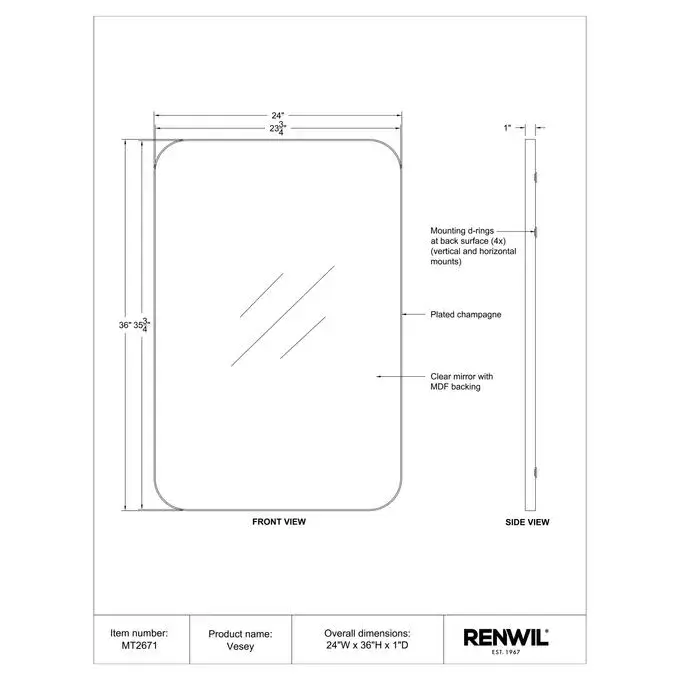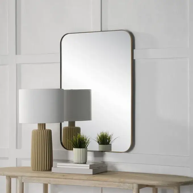 A true reflection of your finely honed design skills, the Vesey mirror is an excellent addition to any of your projects. Bringing a subtle twist to the usual rectangular shape, this wall art mirror features softly rounded corners and a slim-lined frame that make a stylish statement. Lightweight yet sturdy, this aluminum-framed piece is easy to hang either vertically or horizontally to best suit the space. High-quality mirror glass sits within a champagne-plated frame for a modern look that suits a wide range of decorating styles. Discover this mirror for a simple and effective way to bring style to any home or office.