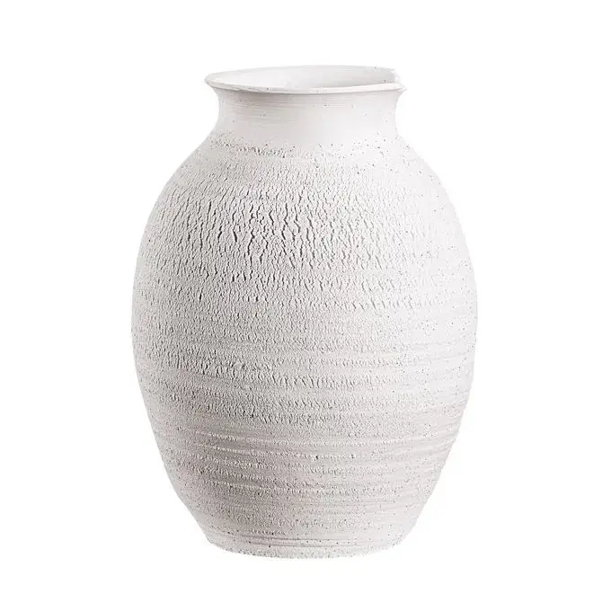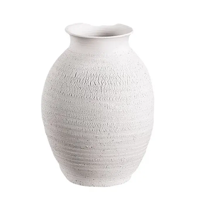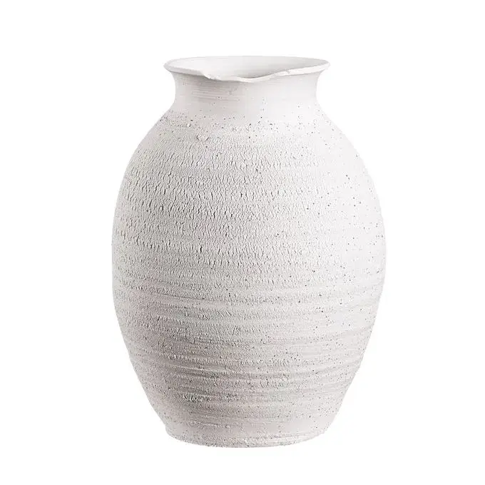 Light casting highlights and shadows on this vase only make it more enchanting. The ceramic structure and matte white finish of this piece create a timeless quality that allows it to fit within a variety of interior styles. With a wide structure, this accessory allows for grand arrangements to be placed inside, from eucalyptus and willows to lavender and faux florals.