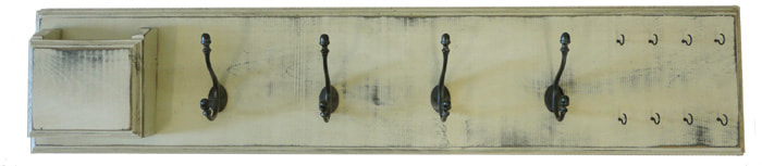 An incredibly handy hanging wall organizer, featuring a pocket for mail / phones / accessories, four coat hooks and eight smaller key or scarf hooks. A perfect addition to your busy entry area!