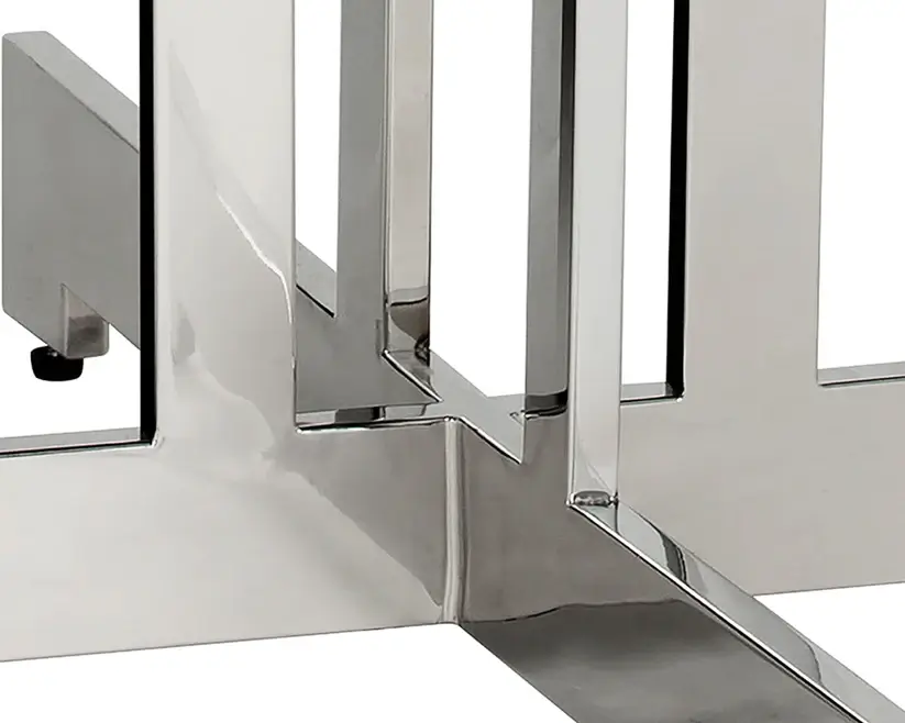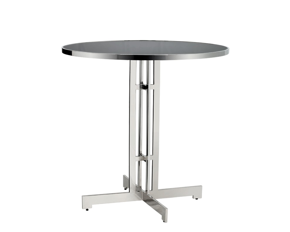 A sleek and sturdy bar table from our Ikon collection featuring an architecturally inspired polished stainless steel frame with a tempered black glass top. An impressive addition to contemporary spaces.