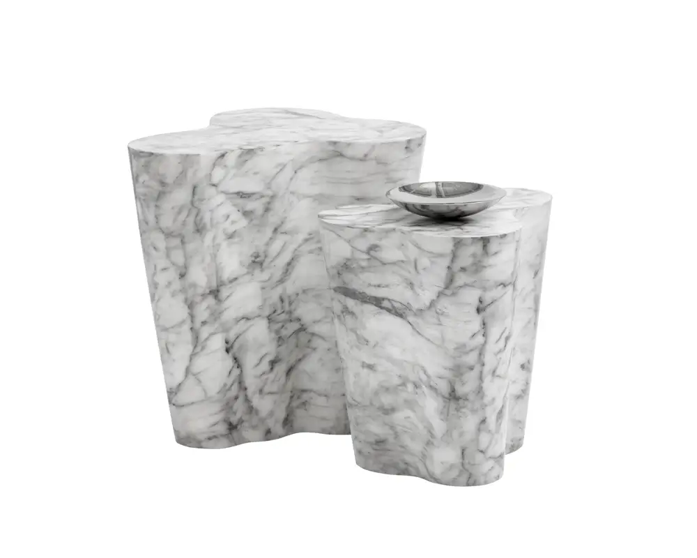 A contemporary and alluring end table from our MIXT collection. Sculpted from concrete and overlayed with a marble-look finish. The shapely design is eye-catching and unique for placement in residential and contract settings. Stocked in small and large end table sizes. Can be grouped together or placed on its own. Also available in our coordinating Ava coffee table.