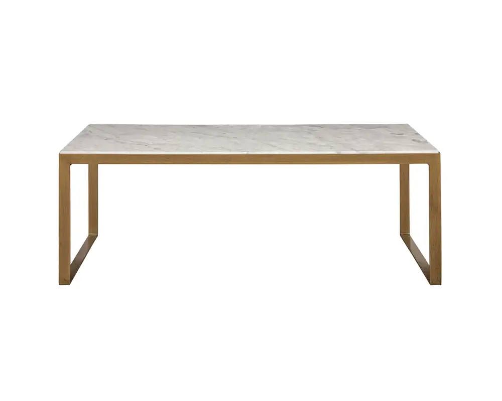 A beautiful coffee table from our Directions collection. Tabletop features a 1" layer of white Italian marble supported by an antique brass steel frame. Can be paired with our high profile Evert coffee table for added dimension. Each piece sold separately.