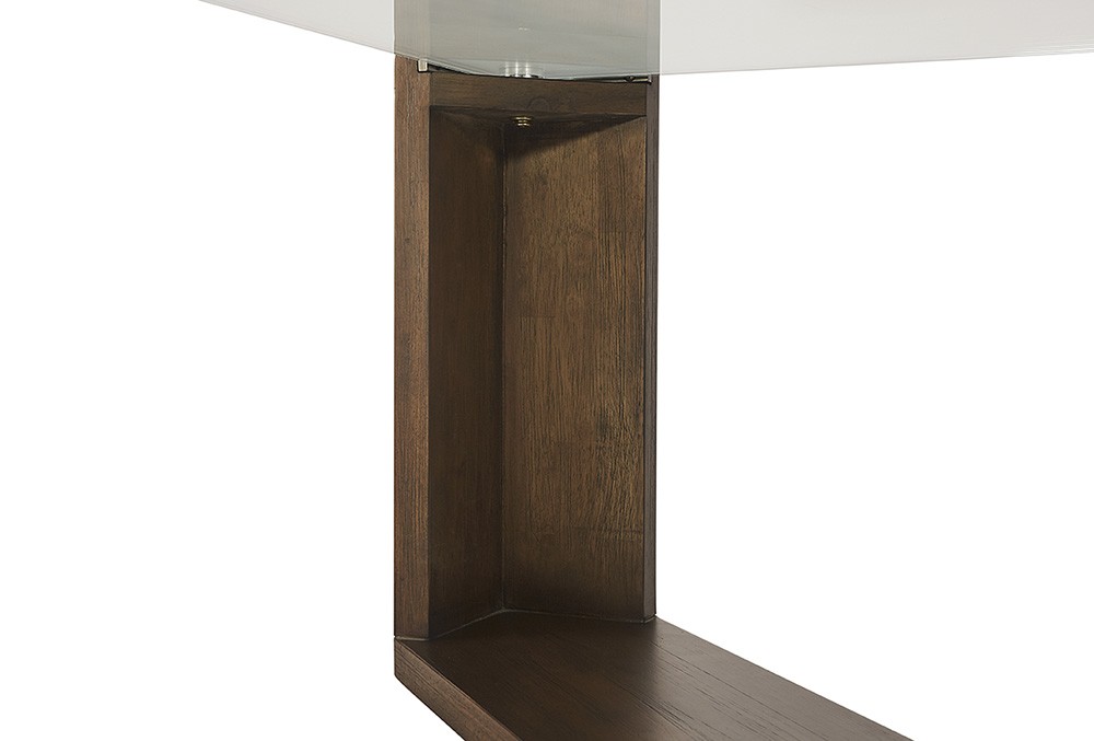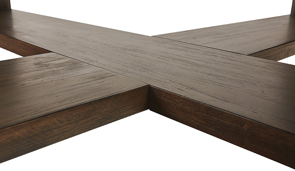 This square coffee table from our Zenn collection highlights clean, rustic elements, making it perfect for transitional spaces. Features a clear tempered glass top and smoked acacia x-frame base.