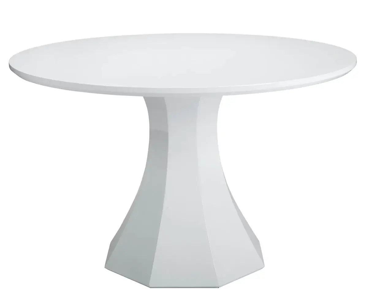 A rare mix of graceful elegance and contemporary design, this stunningdining table is finished in a pure high gloss white and is sure to impress.Now available in a 48"" diameter with seating for four people.