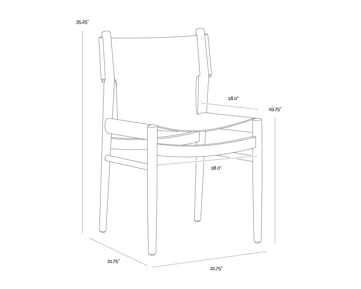 Crafted from a single piece of supple nubuck leather, the seat and back of the Argus Dining Chair are elegantly suspended within a solid oak frame. Inspired by the relaxed form of a director's chair, it features stitched leather side panels highlighting its artisanal finish. With its clean profile and sling-style silhouette, it channels a refined mid century-modern aesthetic.