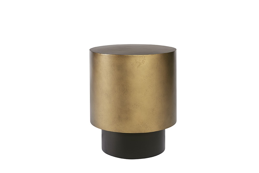Add elegance to various contemporary living and lounge spaces with this round end table crafted in India. Features a simple design with an hand-painted antique brass finish and a black base. Coordinating coffee table also available. Made in India. With refined craftsmanship, this design was brought to life by skilled local artisans. By nature, these materials develop unique imperfections such as fissures, markings and colour variations for a truly one-of-a-kind piece.