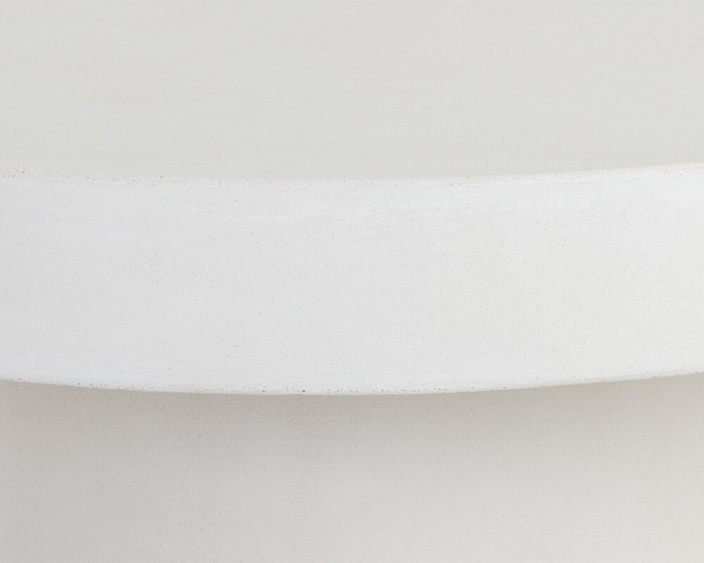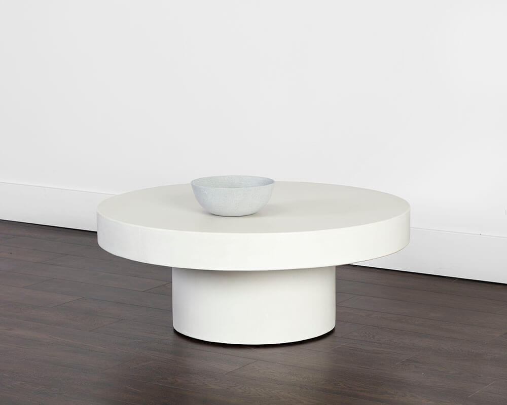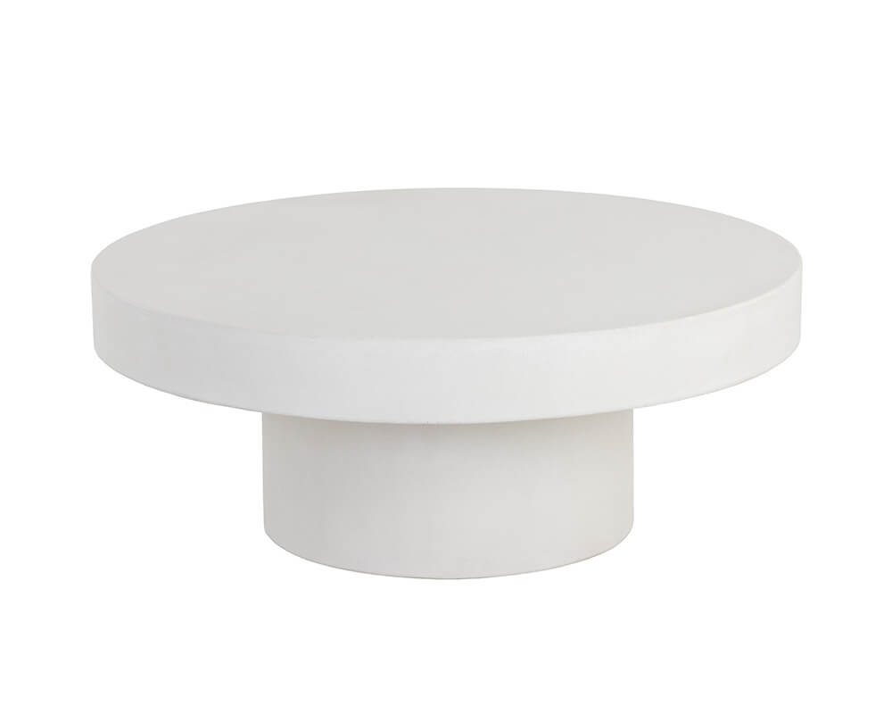 This bold, round coffee table will be the perfect addition to urban, contemporary or modern spaces. Made with sealed concrete that will display variations of white hues, which are unique to each piece and will enhance over time. Suitable for indoor and covered outdoor spaces. Also available in grey concrete.
