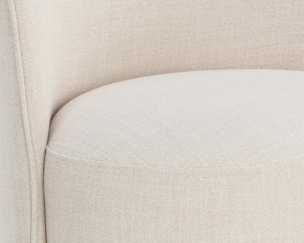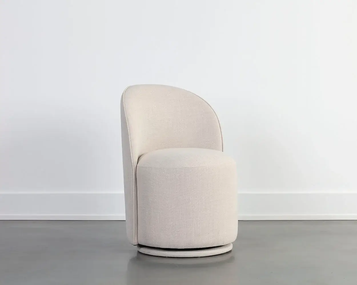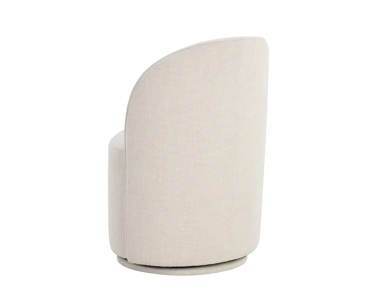 The Cavoli Swivel Dining Chair is distinguished by its curved silhouette. Fully upholstered in our effie linen fabric for a monochromatic look.