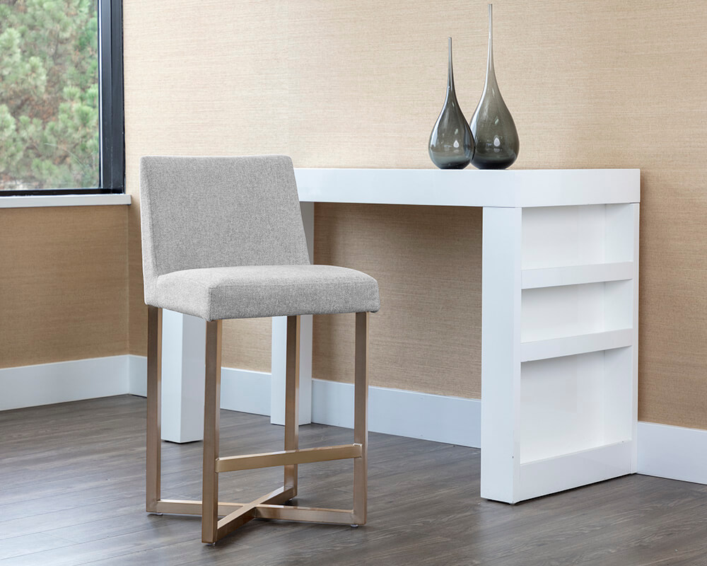 SUNPAN Howard Counter Stool – Antique Brass – Belfast Heather Grey 108533