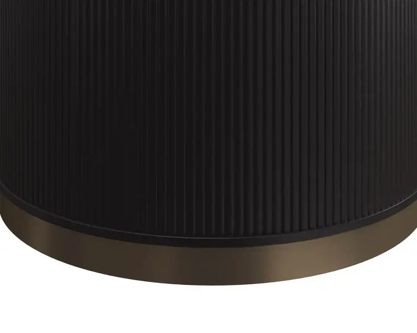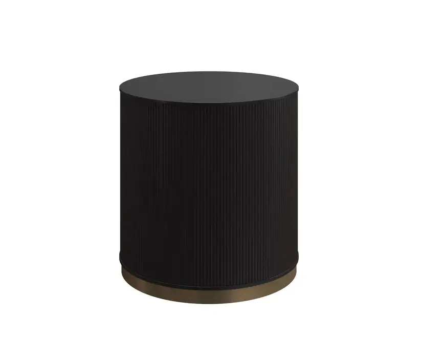 The Kalla Side Table brings form and function to life. Crafted with a rustic oak veneer with vertical reeding. A gold steel base finishes the look. As wood is an organic, porous material, these pieces will contain natural variation of texture and may also exhibit fine indentations and cracks. Wood pieces will also display a disparity of colour and grain, and visible knots and burls that add to the character of each piece.