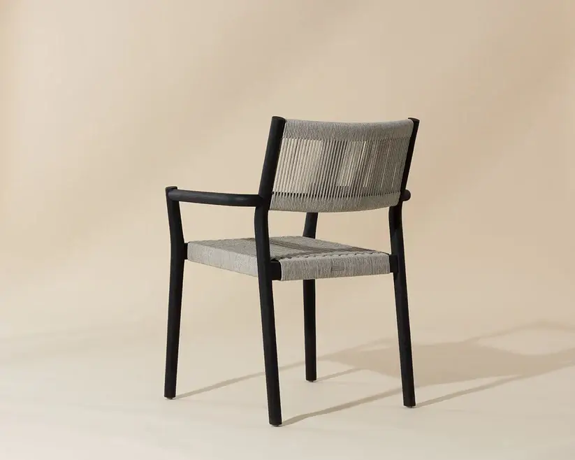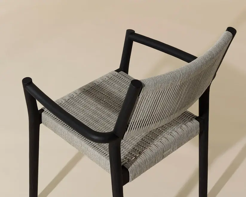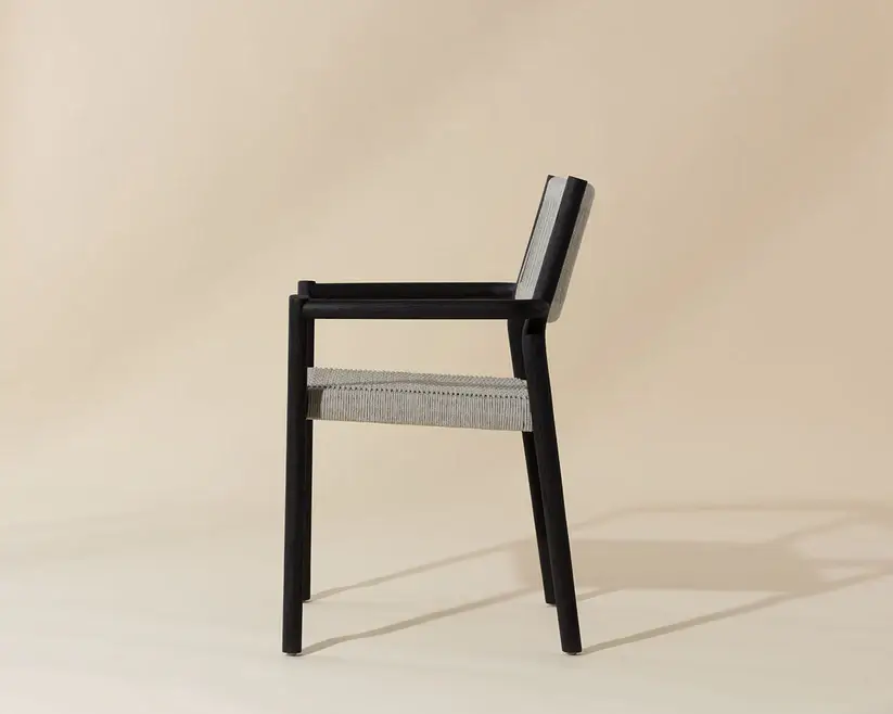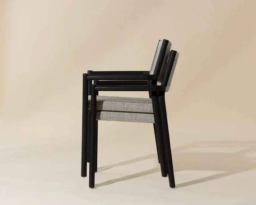 Reimagine al fresco dining with the stylish and functional Kavala Stackable Dining Armchair. A simple charcoal teak wood frame draws attention to the breezy handwoven rope design on the seat and backrest, encouraging an elegant arrangement around a table when paired in multiples.