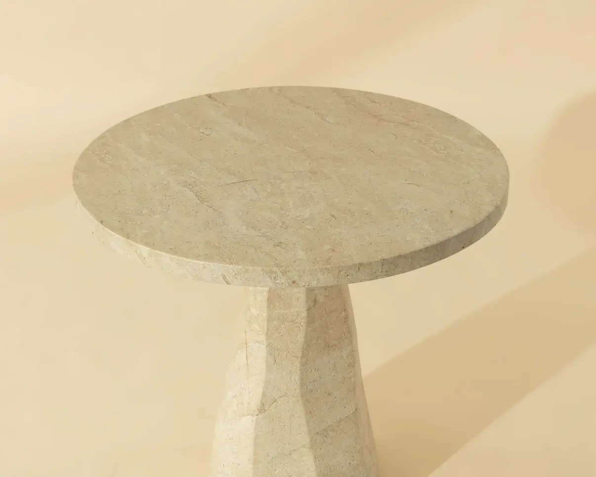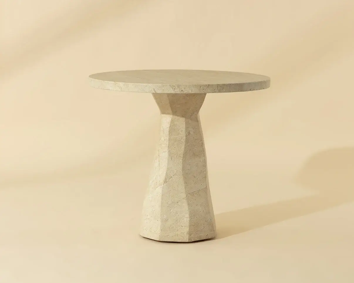 A sculptural interplay of angles and texture, the Kliff Bistro Table is cast in sealed concrete with a distinctive travertine look. Designed to move effortlessly between indoor and alfresco settings, it makes a bold statement from every angle.