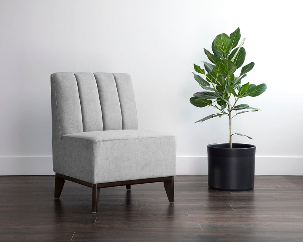 A fancy modular banquette single seat that is full of creative possibilities. Upholstered in polo club stone performance fabric with vertical tufting, and completed with brown birch wood legs. This piece can be sourced alone or in a variety of combinations with the coordinating Kosovo bench and corner seat. Performance fabric is moisture repellent, stain resistant and easy to clean. Also available in abbington navy fabric.